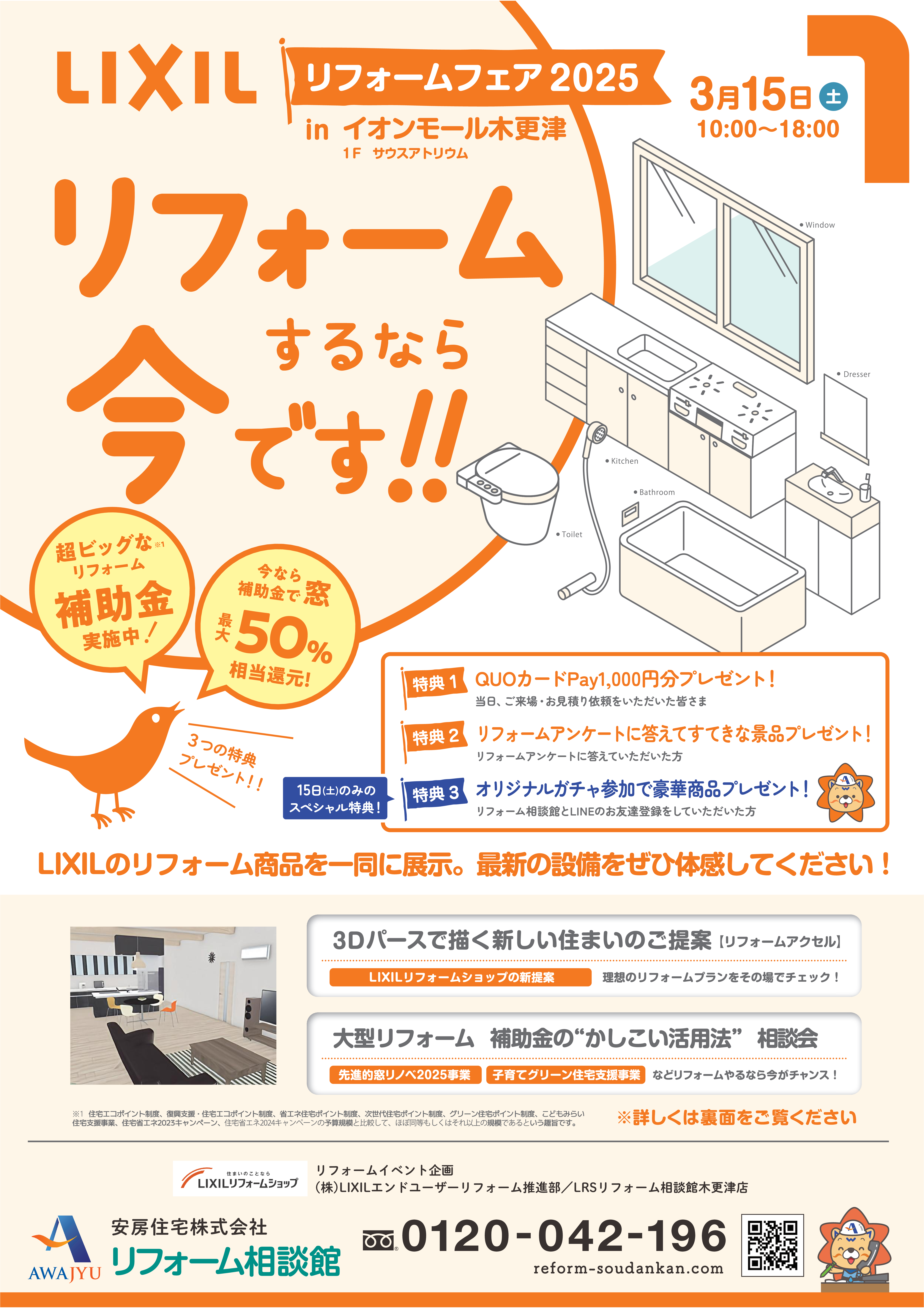 今日はリクシル×安房住宅㈱のリフォームフェアのお知らせです。