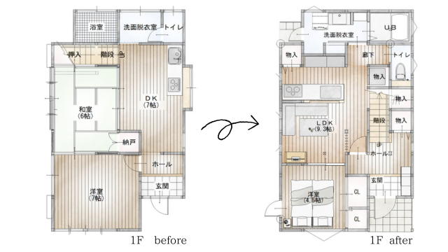 南側へLDKを移動し、リビングに光が入るように間取りを変更しました。
