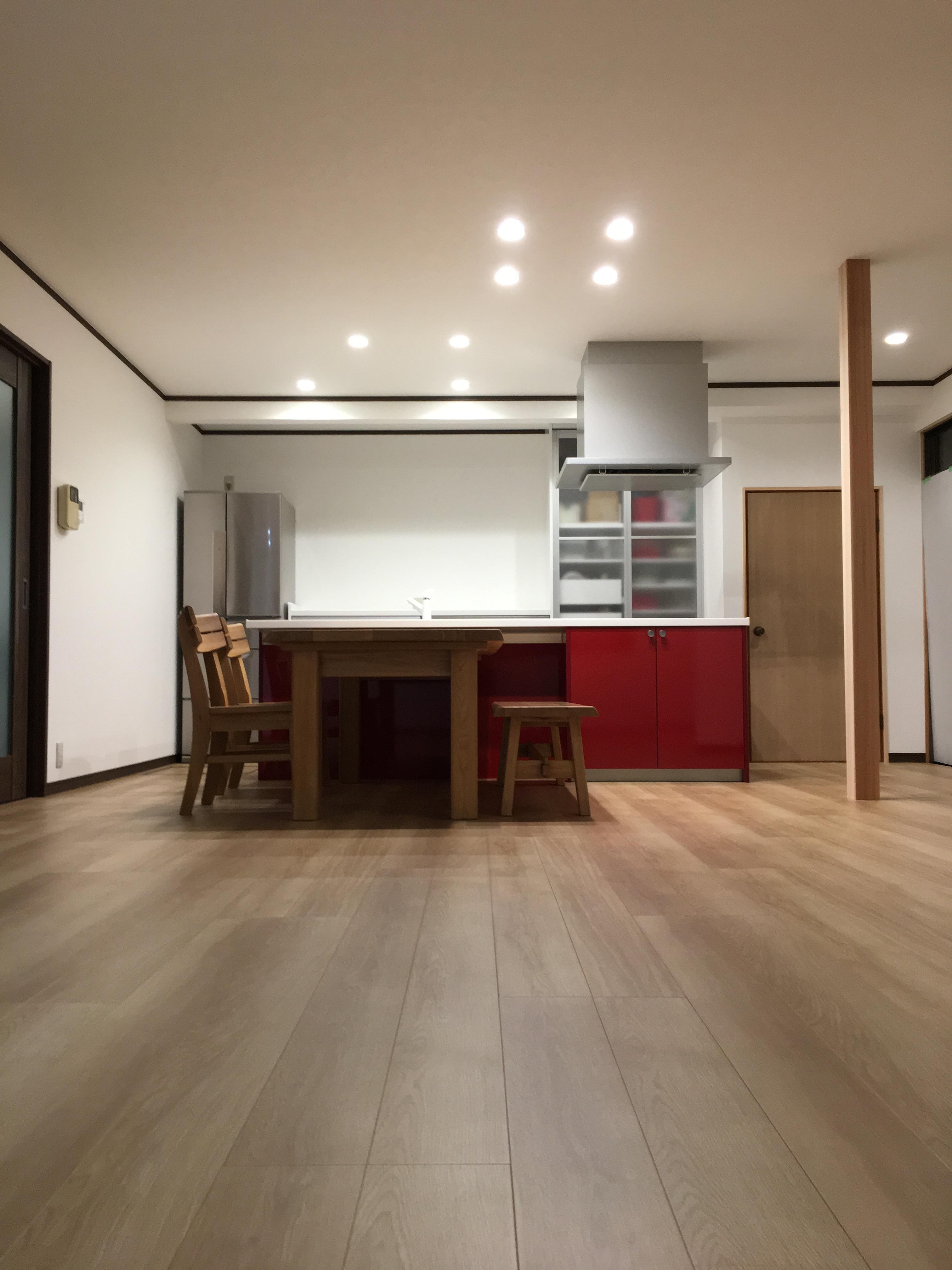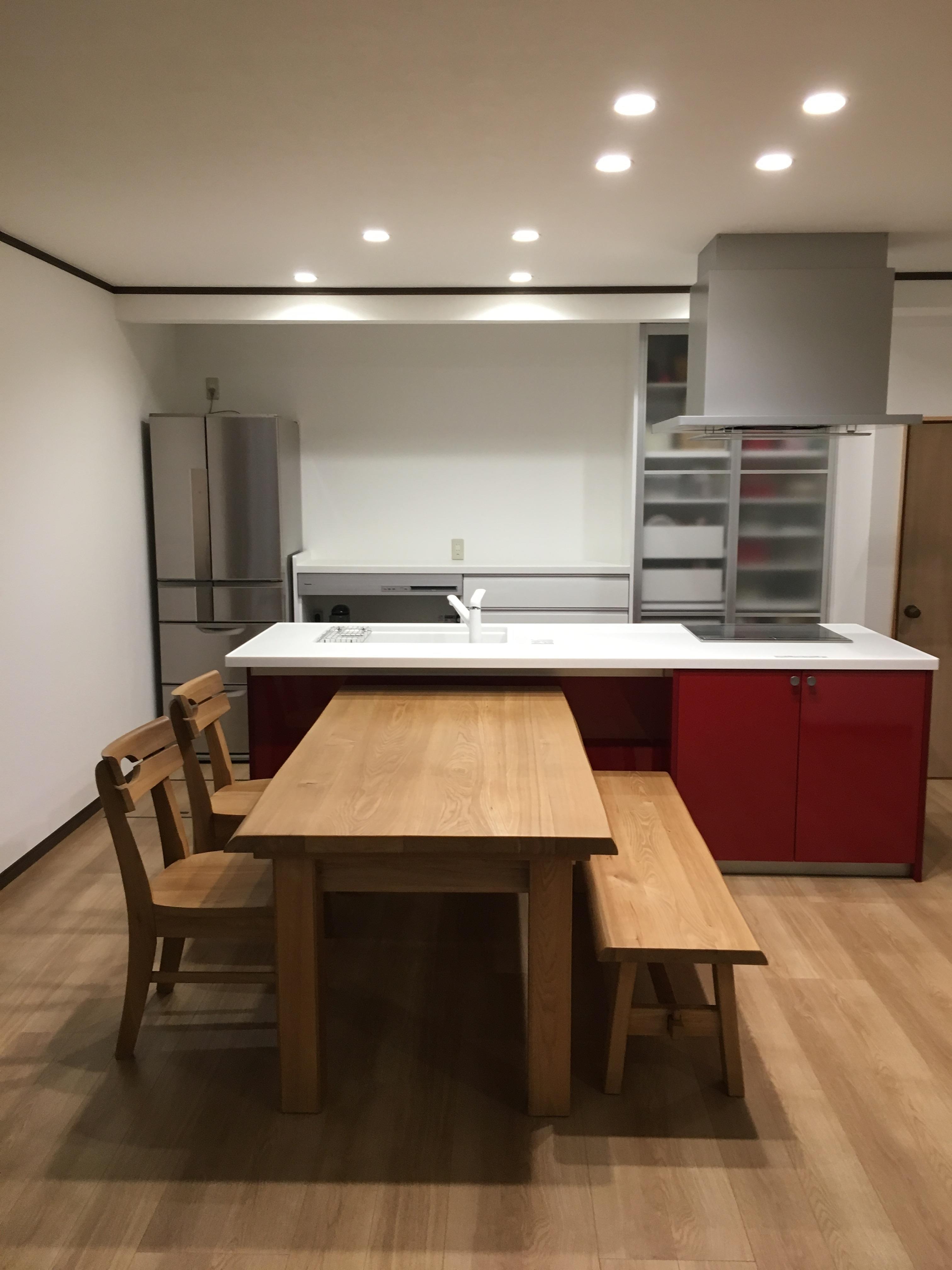 借家として住み慣れた家を購入。床断熱、窓断熱で断熱性を上げ北側にあったダイニングキッチンを南側へ。和室と洋間をつなげ日当たりの良いLDKへ改装しました。