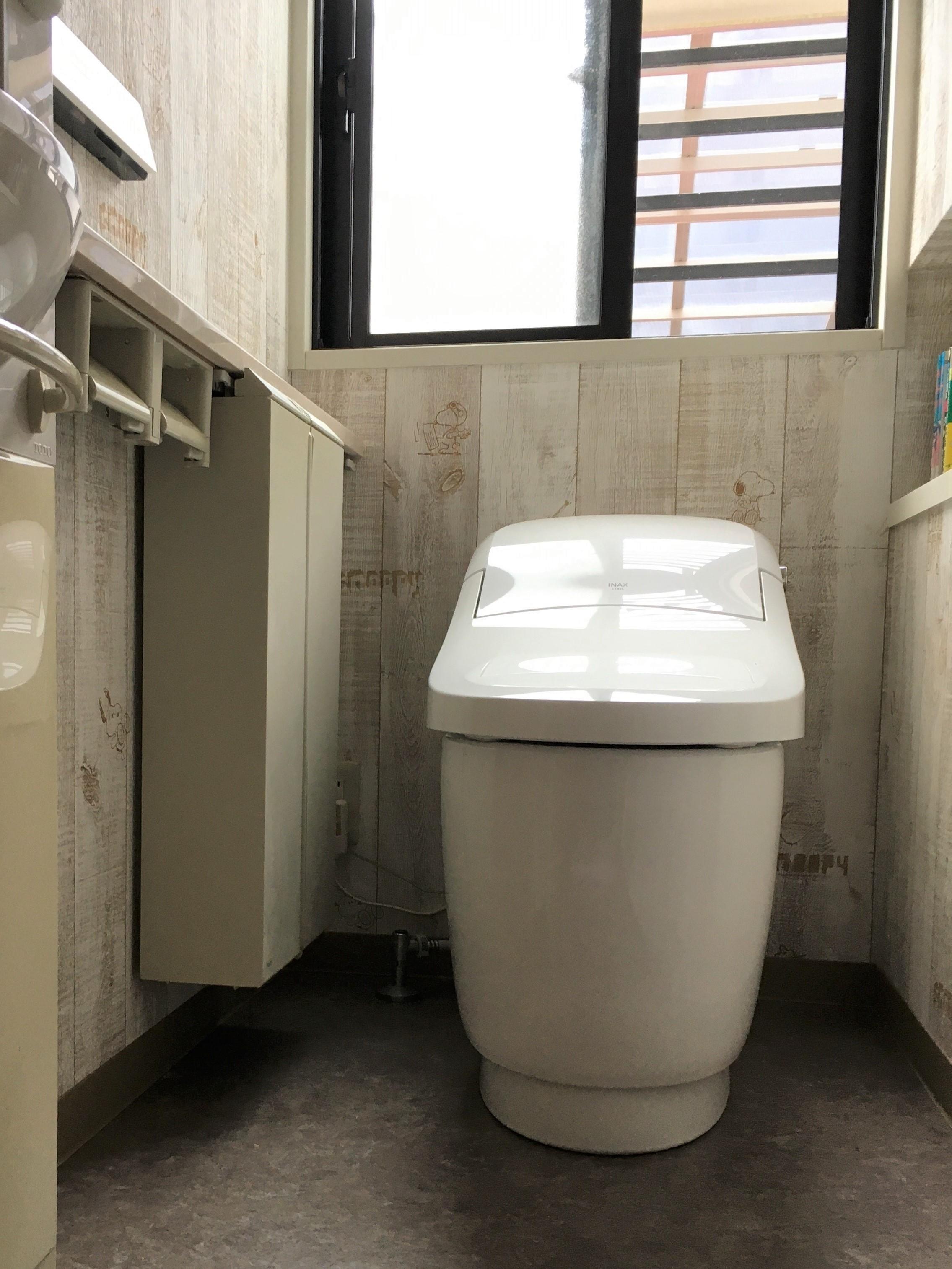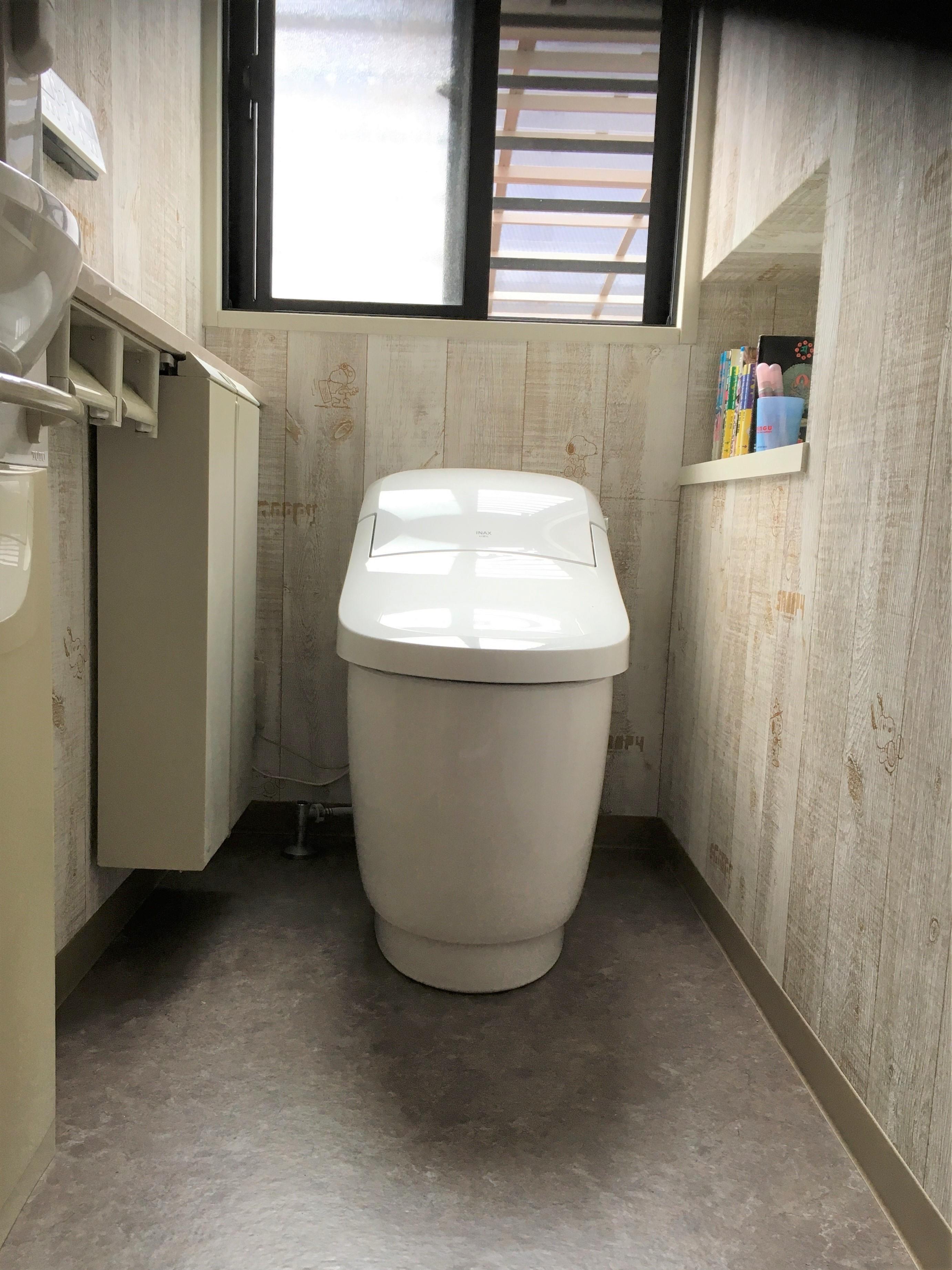 地震により便器が故障。内装も含め改装。 欲しい仕様と価格のバランスの良いプレアスを採用。 空間もすっきり、お掃除もしやすくなりました。
