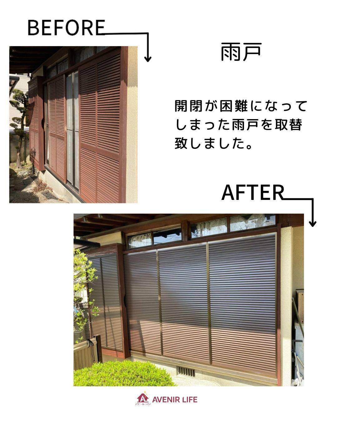 既設の雨戸枠はそのままで雨戸パネルの交換をするだけ。