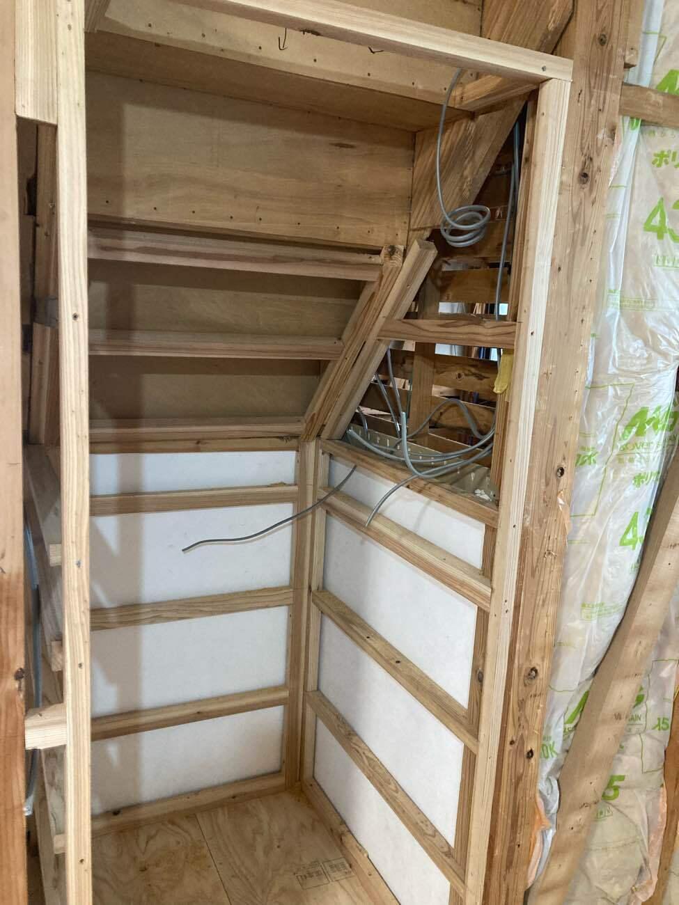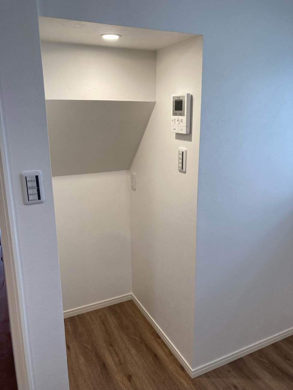 階段下の空間は、奥行きを活かせば意外と収納力があります。