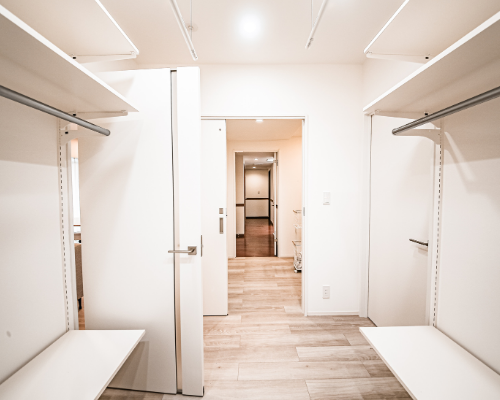 寝室直結の収納があると、朝の準備がぐっとラクになりますよね♪