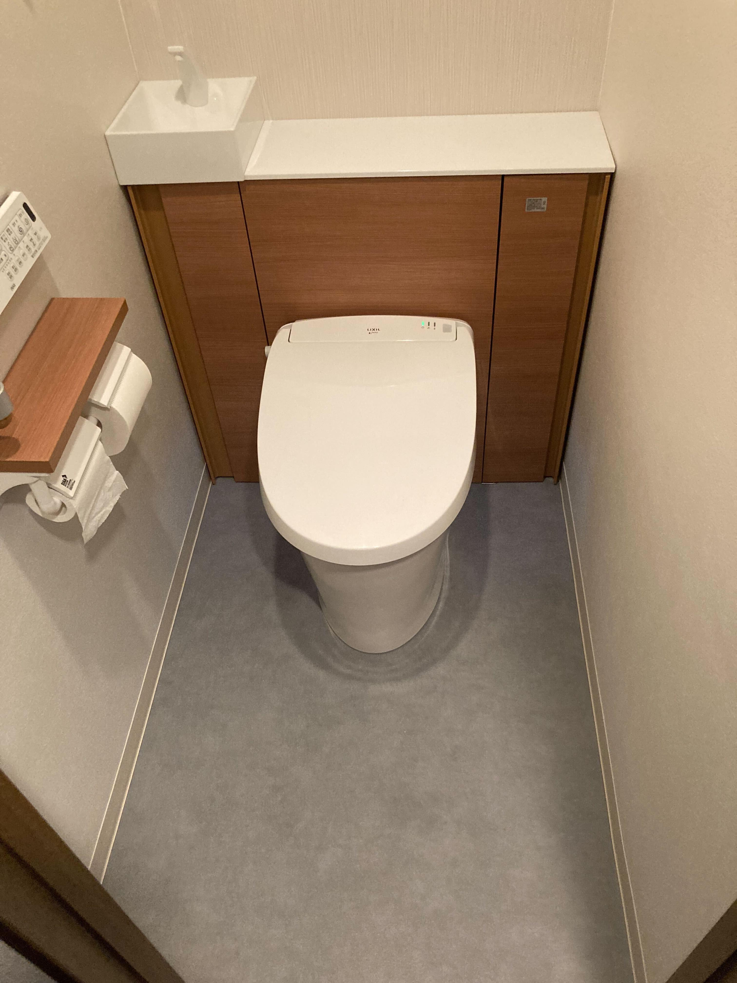 リフォレはシャープなシルエットの便器がキャビネットと一体化したデザイン。見た目がスッキリして空間が広く感じられます。お掃除も、ホコリがたまりやすい後ろの部分を全てキャビネットに隠したので、お手入れが簡単です。そして、お掃除道具や、予備のトイレットペーパーなど、キャビネットの両側にしっかり収納でき、見た目も綺麗です。