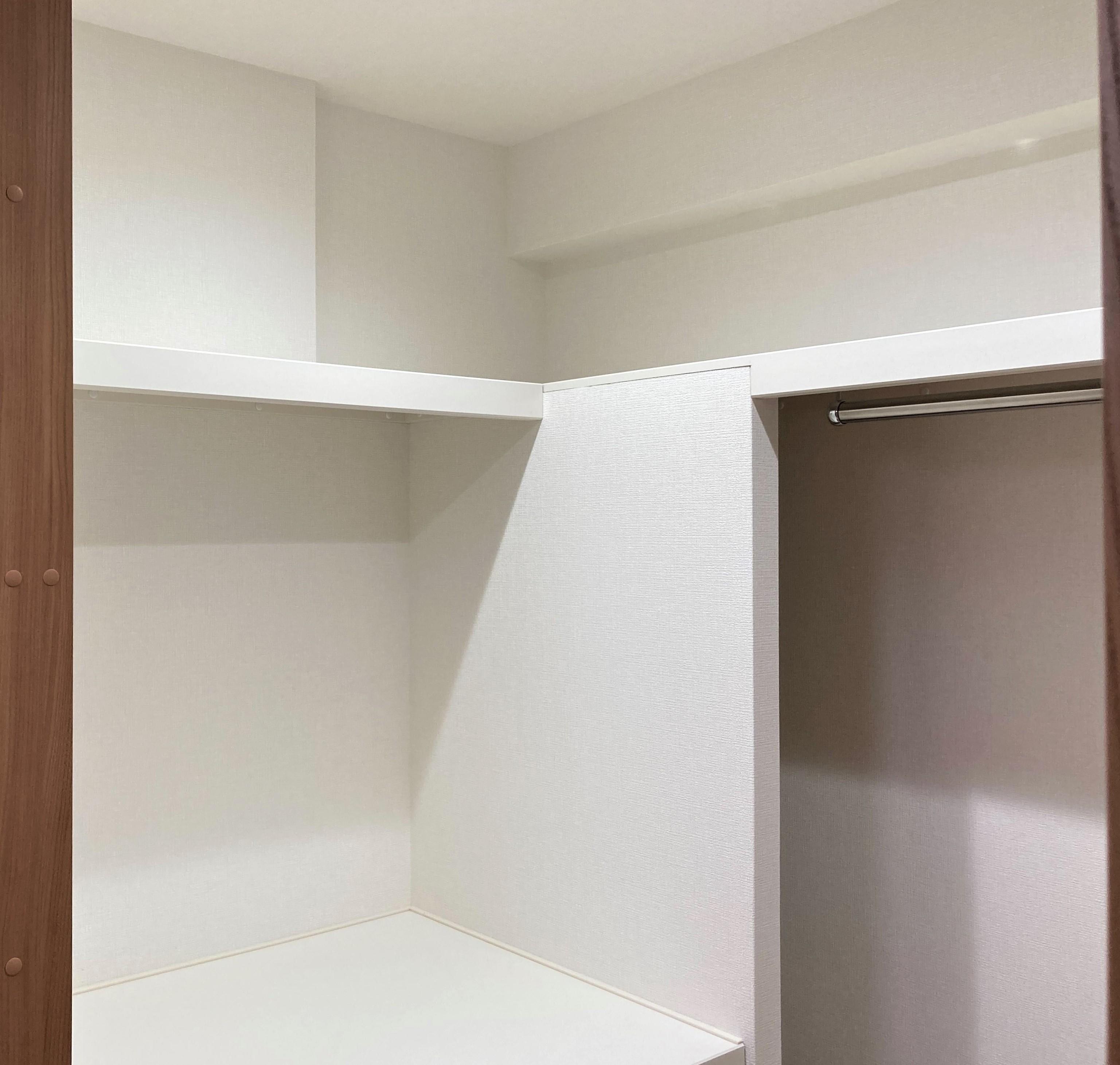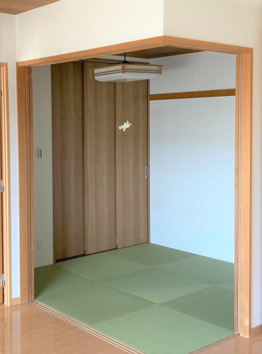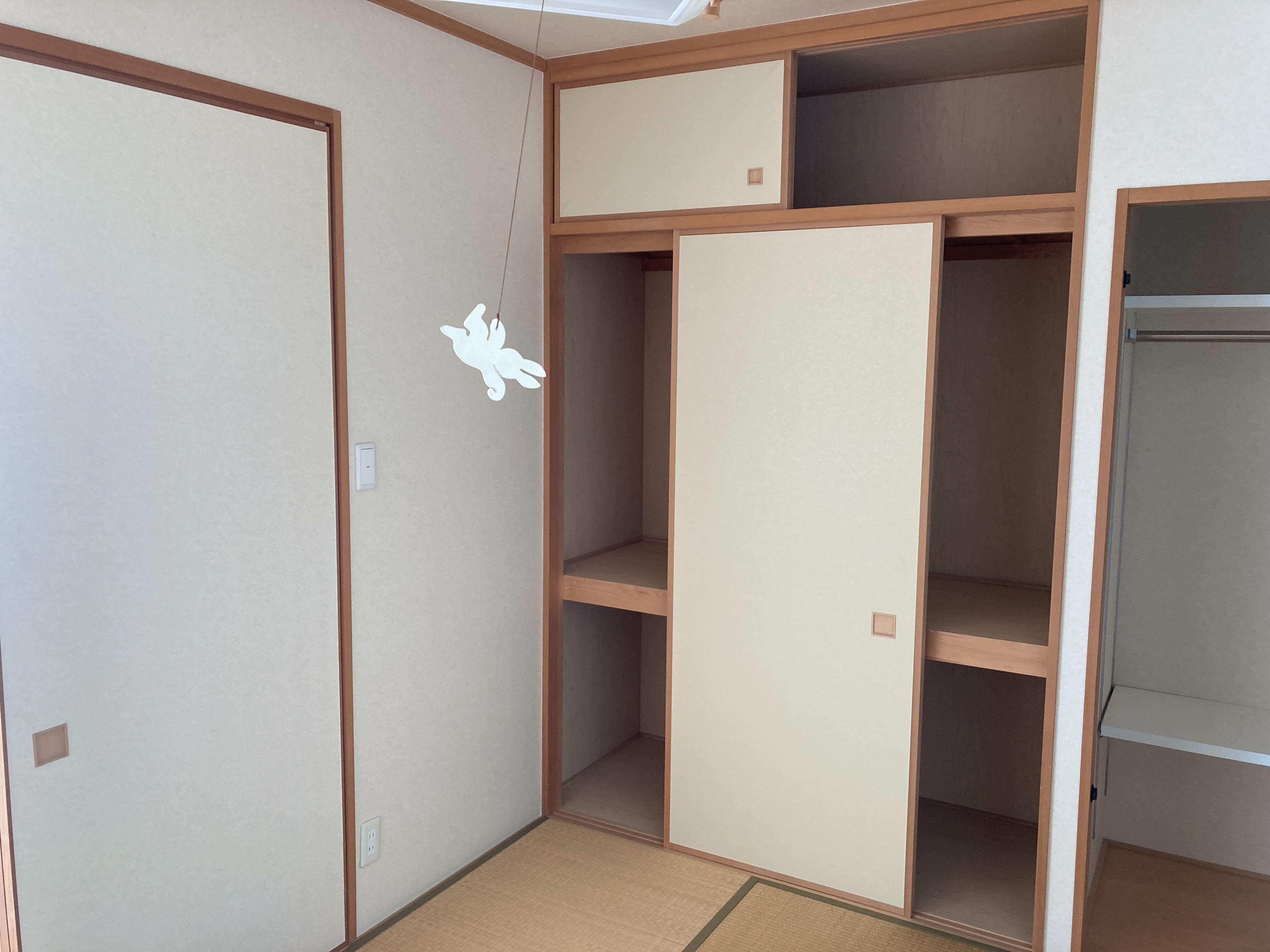 和室の押し入れをウォークインクローゼットに替え、畳を琉球畳にしました。 ウォークインクローゼットは可動棚の取り付けや入れたいものに合わせたサイズにしました。お布団もぴったり入ります!