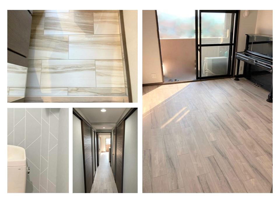 トイレ、玄関、廊下、リビングを壁紙と床を張り替えて内装を一新!お家全体が明るい雰囲気になりました。