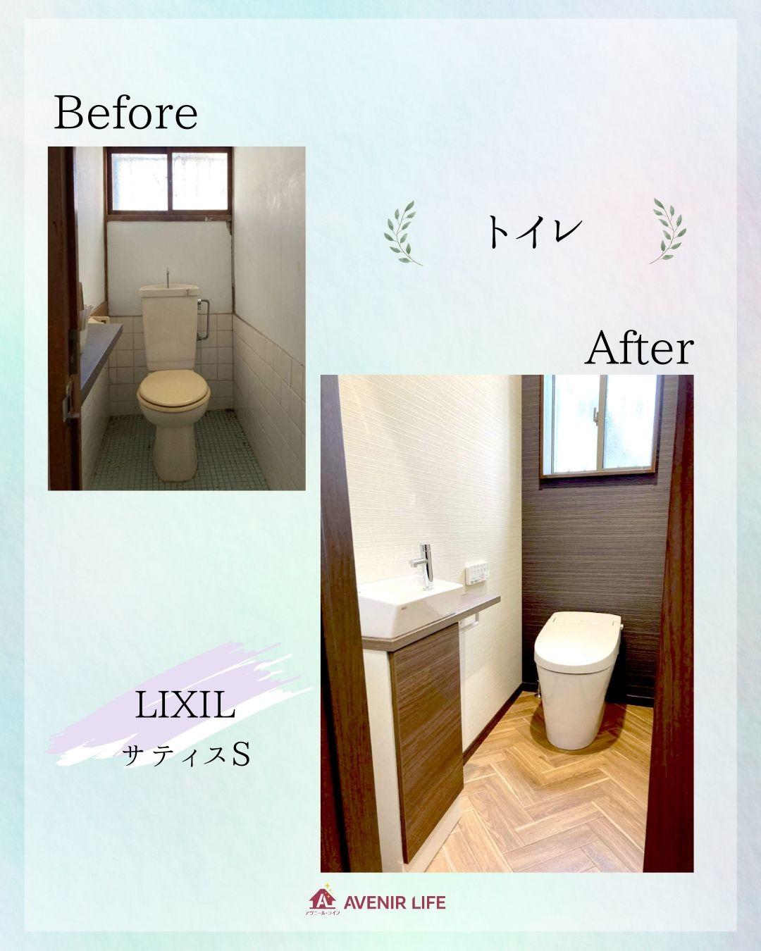 経年による劣化が目立っていた浴室、洗面、トイレは、落ち着きのあるナチュラルモダンな空間に♪