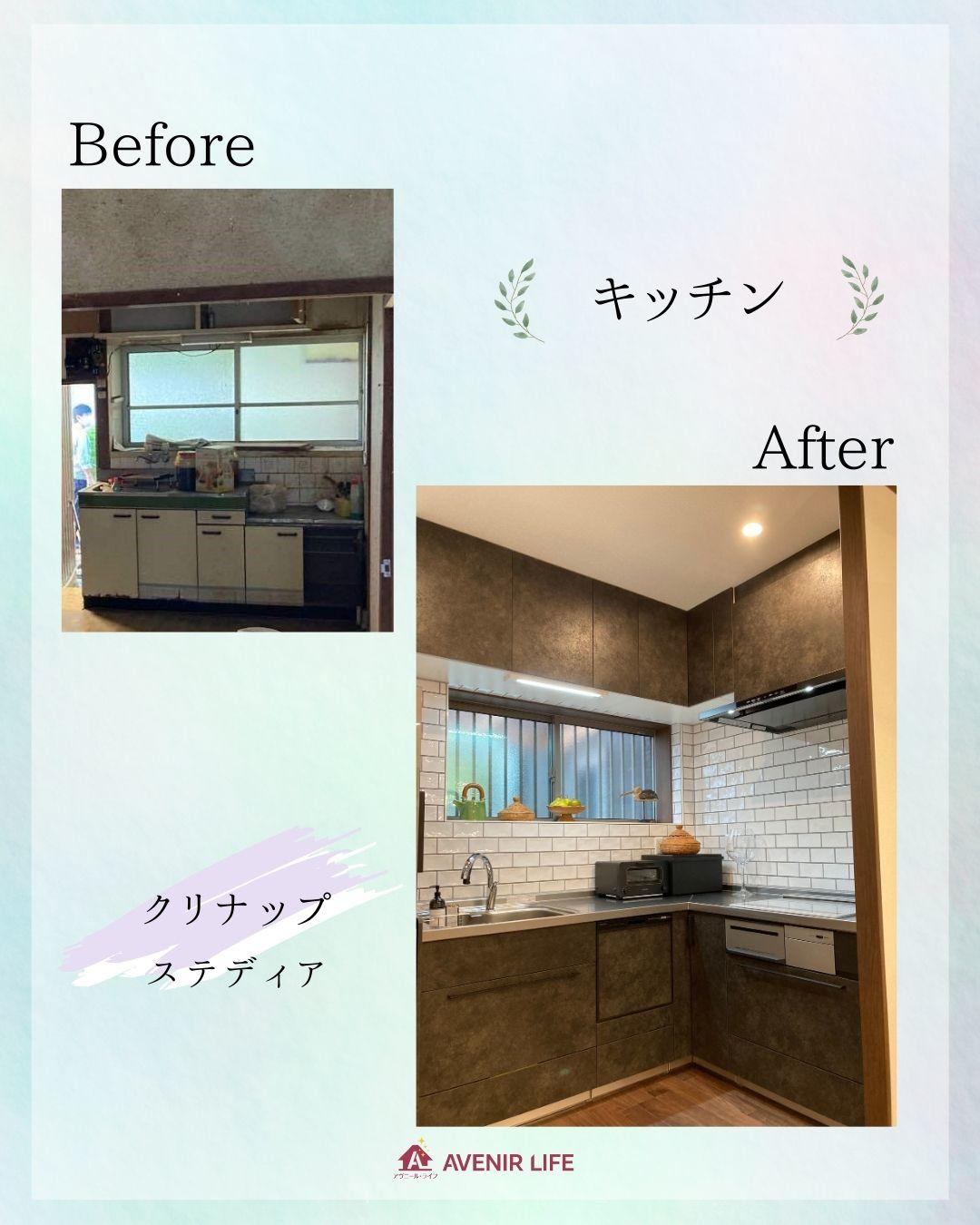 作業スペースが狭かったキッチンは、L字型にすることでスムーズに作業しやすいキッチンに。