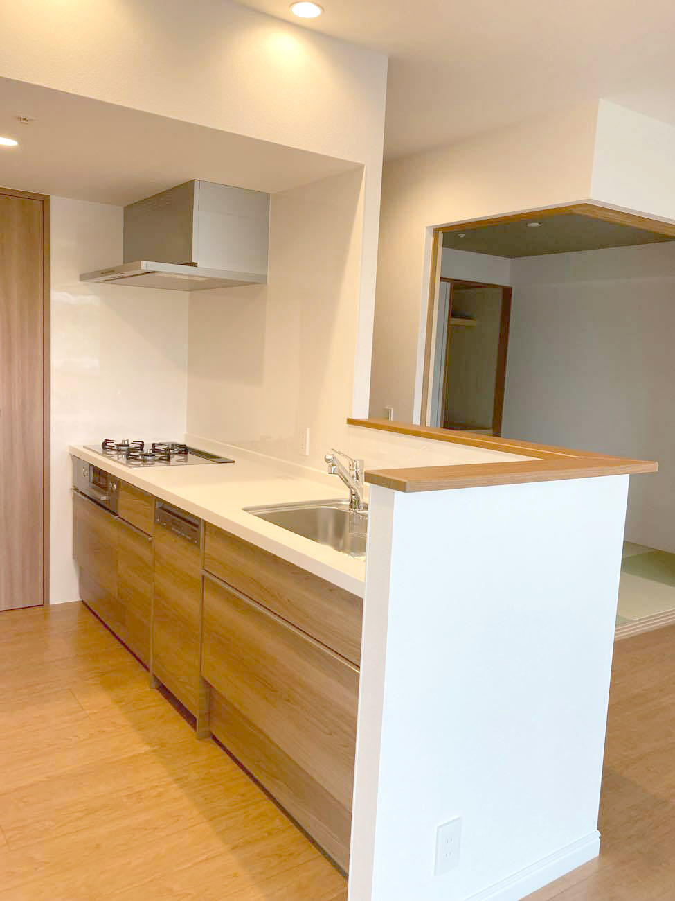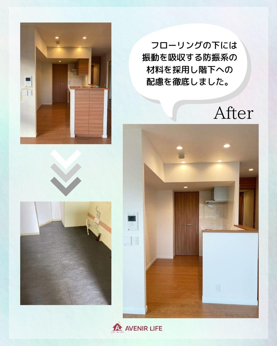 キッチンのフローリングの下には振動を吸収する防振系の材料を使用し階下への配慮を徹底しました。