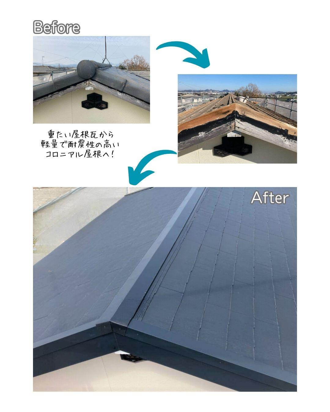下地を打ち直した上に防水シートを貼り、軽量で耐震性の高いコロニアル屋根に葺き替えました。