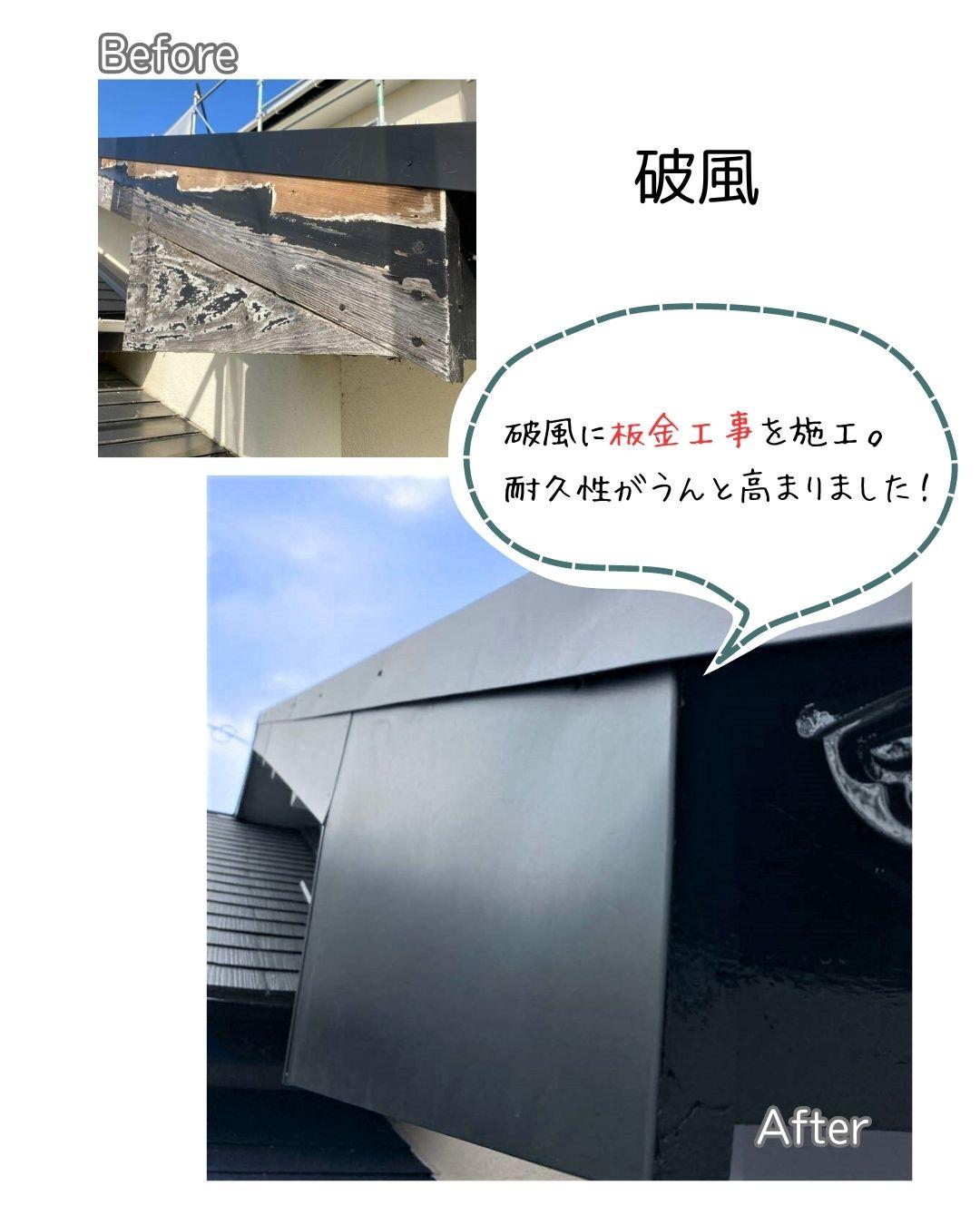 破風板は、塗装だけだと定期的な塗り替えが必要ですが、板金工事をすることで耐久性がうんと高まります。