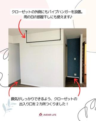 さらに、クローゼットの外側にもパイプハンガーを設置。