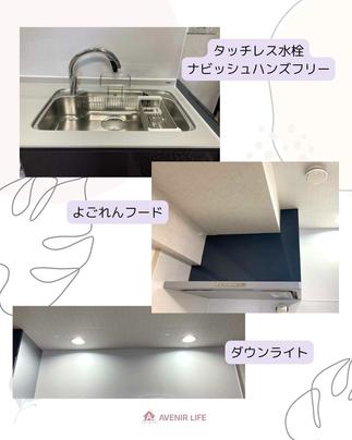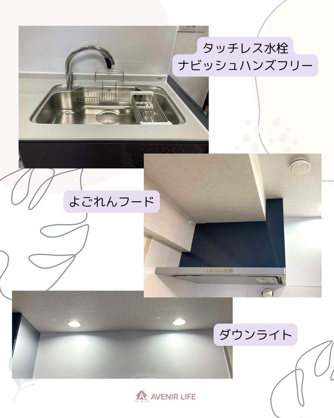 レンジフードには、面倒なファンのお掃除がいらない「よごれんフード」を採用し、お手入れラクラクなキッチンになりました♪