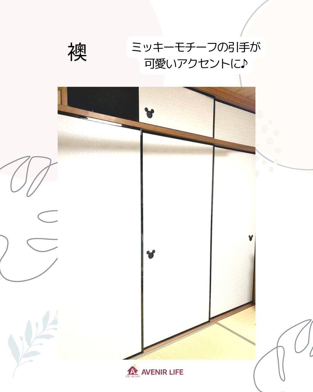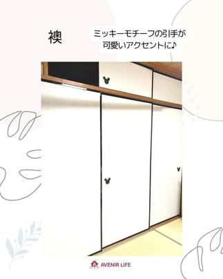 ミッキー型の引手がアクセントになった可愛らしい印象の和室になりました♪