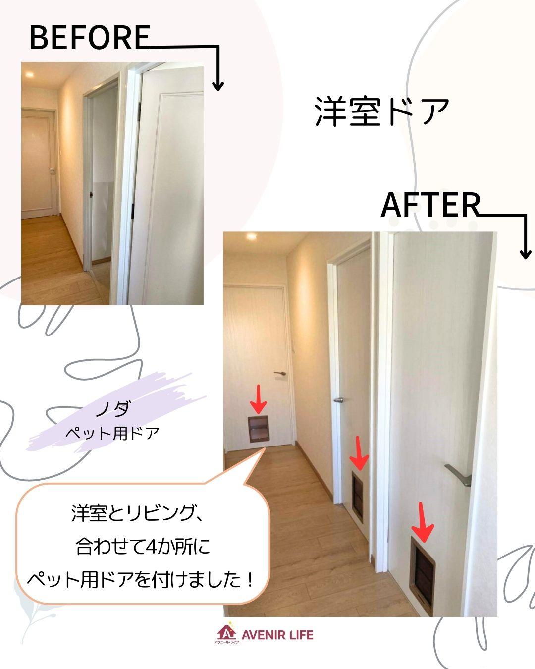 ペット用ドアがあれば、飼い主がドアを開けてあげる必要がなく、ペットにドア周辺を傷つけられることも少なくなります。