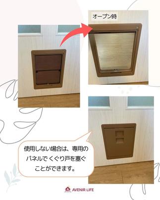 掃除などでペットの出入りを制限したいときは、専用のパネルでくぐり戸を塞ぐこともできるので安心です。