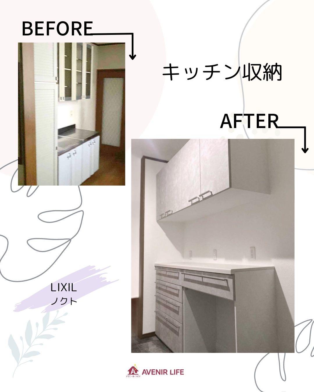 H様はキッチン、キッチン収納、洗面の引き出しを淡いグレーカラーで統一。