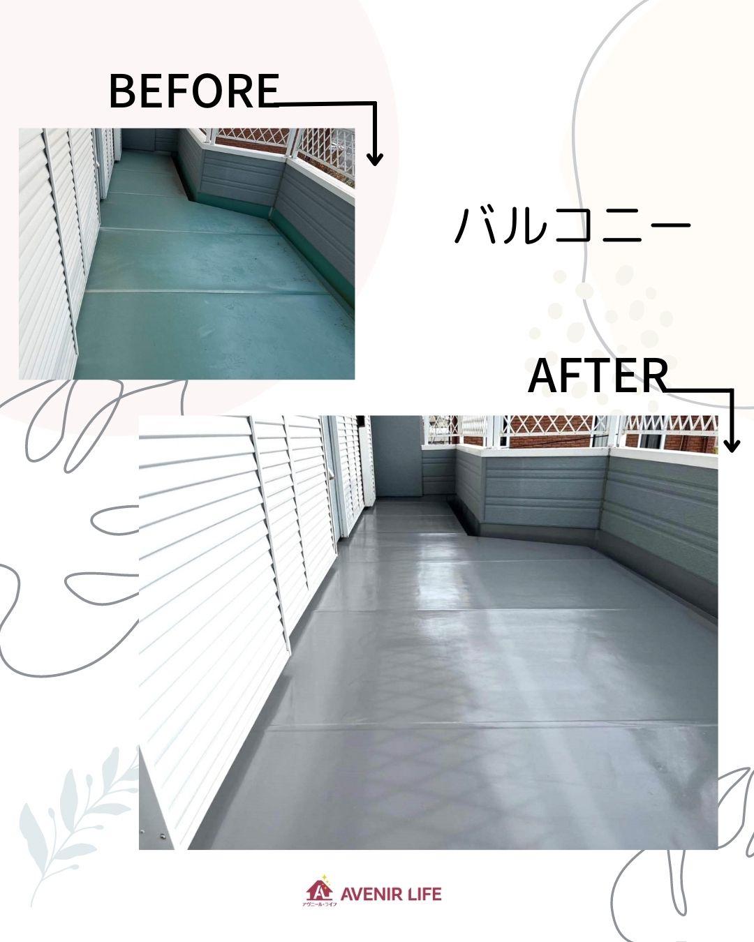 劣化が気になったバルコニーは、しっかりと防水処理をしてから綺麗に塗り替えました。