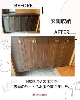 玄関収納は表のシートのみを張り替えるなど、使える部分は残しながらリフォームすることで、コストを抑えることができます。