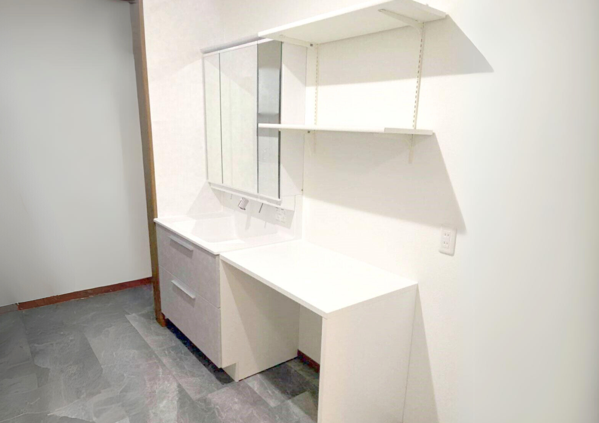 さらにキッチンと洗面室のフロアを同じデザインにすることで統一感のあるスタイリッシュな空間に生まれ変わりました。