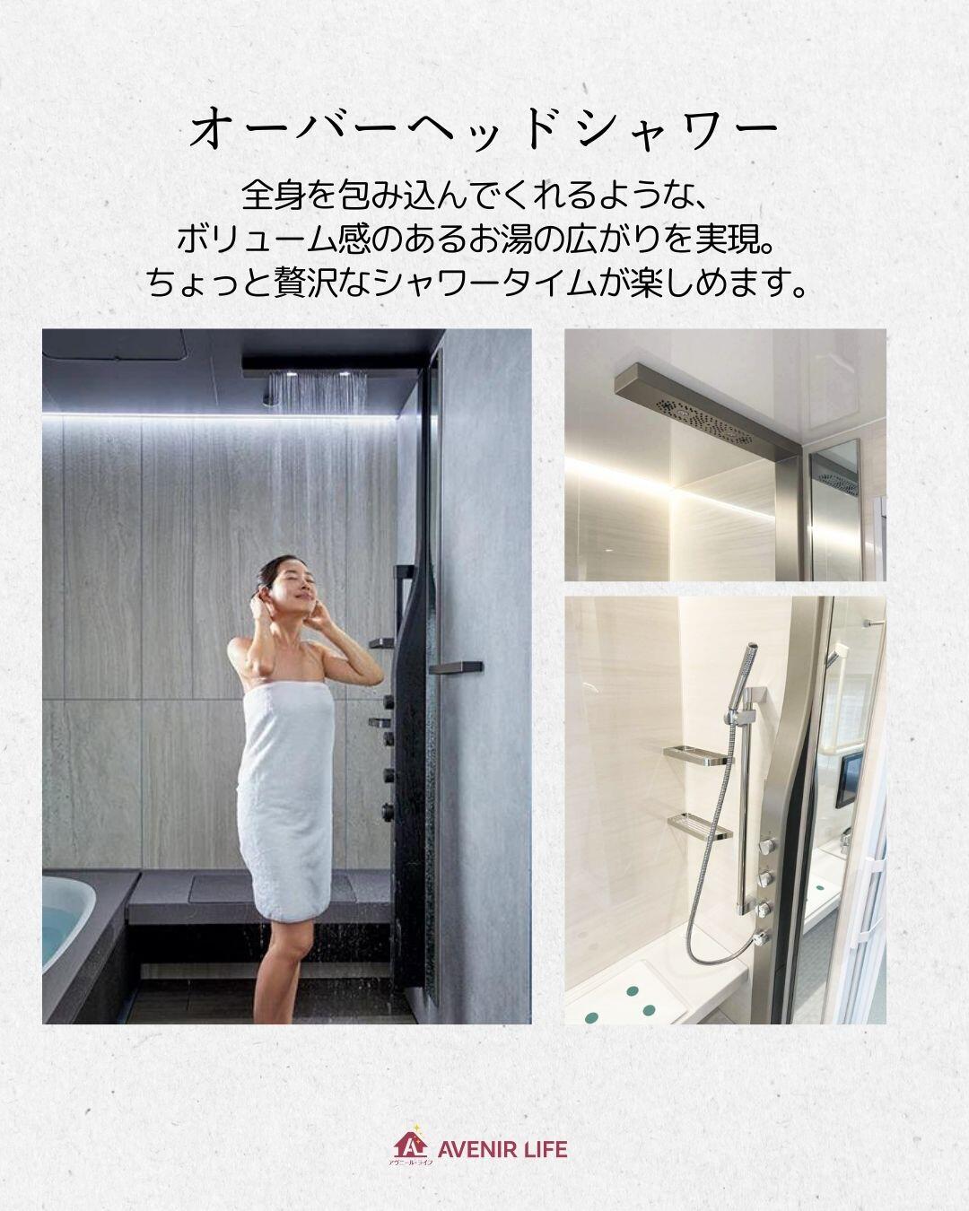 洗い場には、オーバーヘッドシャワーが愉しめる“アクアタワー”を。