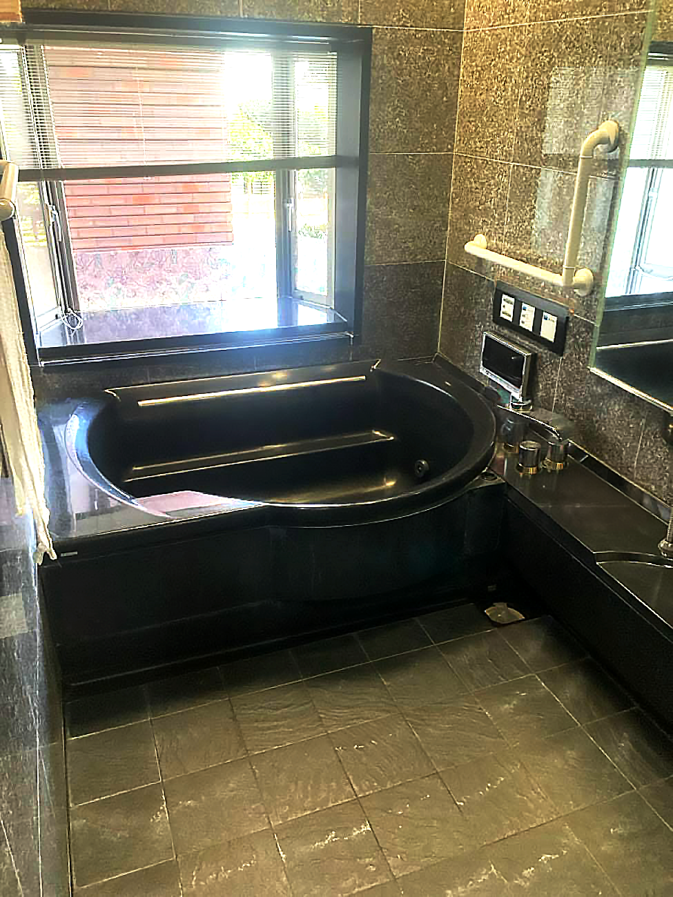 重厚な雰囲気の黒い浴槽だったO様邸、今回のリフォームでは浴槽も壁もホワイト調で揃えてガラリ雰囲気を一新♪