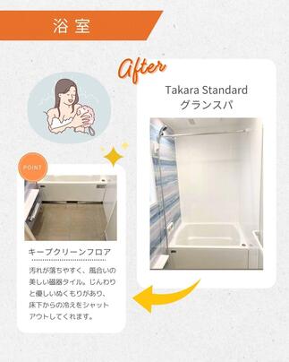 冷たかったタイル貼りの浴室から、断熱性の高いあたたかな浴室に♪浴室幅にぴったりサイズの浴槽で、お掃除もラクになりました。