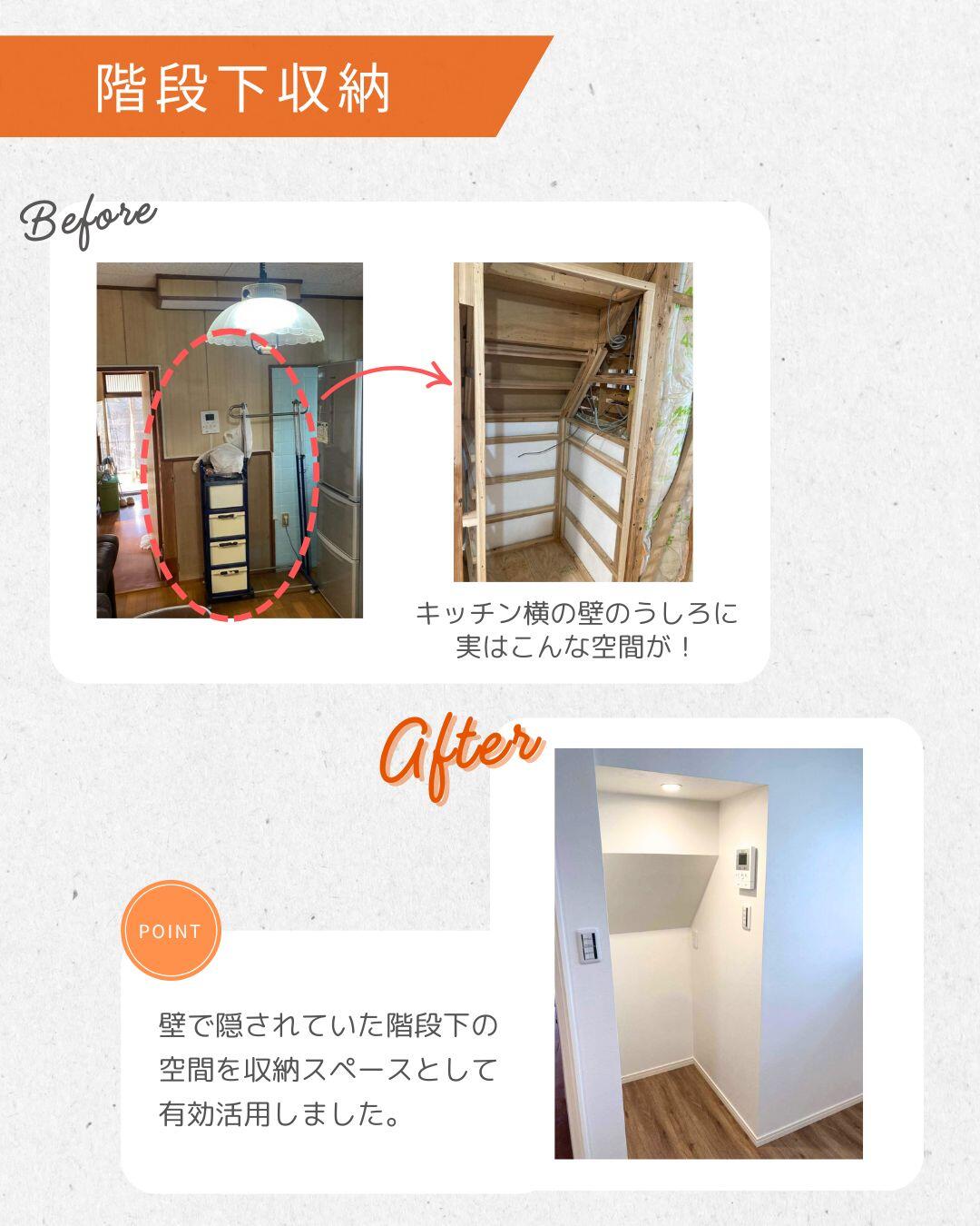 また、使いづらかったスペースも見直し、収納をしっかり確保。限られた空間をムダなく使えるよう工夫を凝らしました。