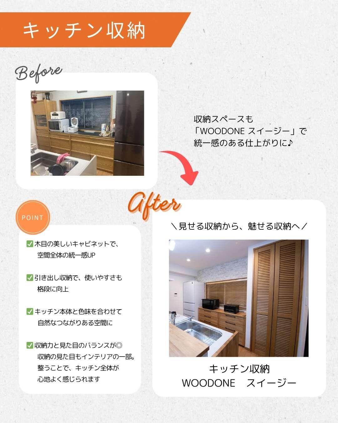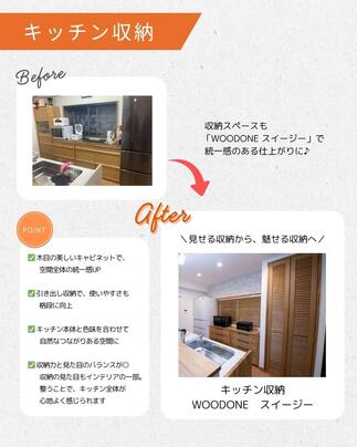 キッチンとリビングの収納や建具を木目で統一することで、あたたかみのある空間に仕上がりました♪