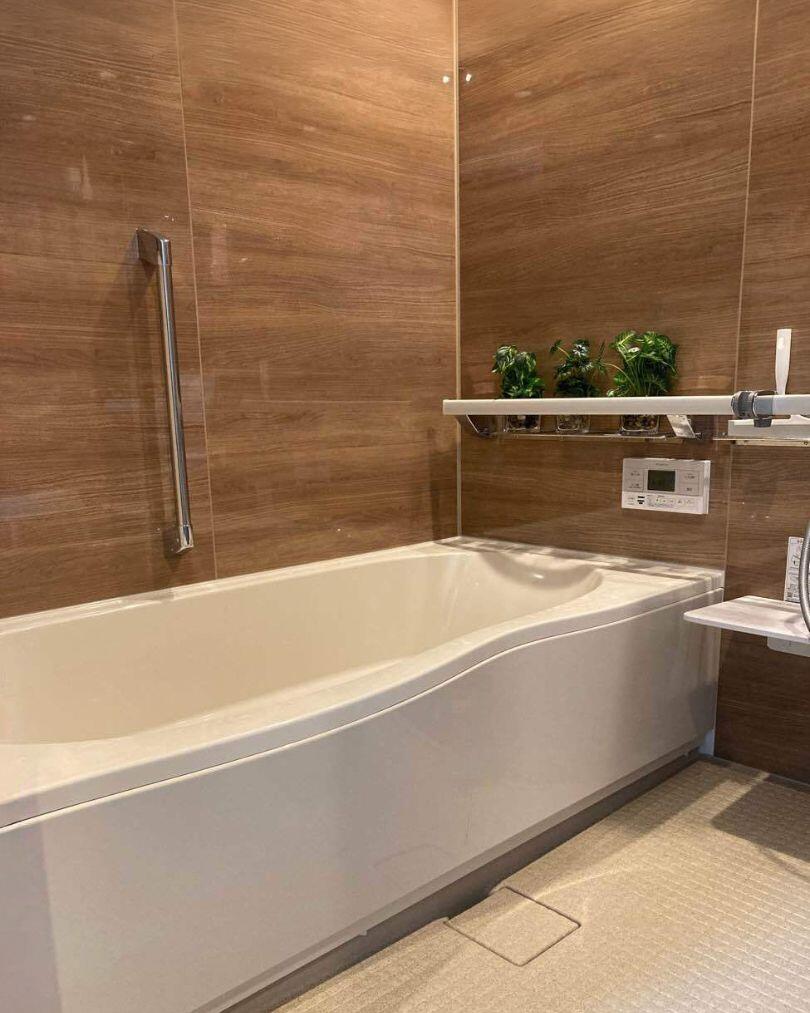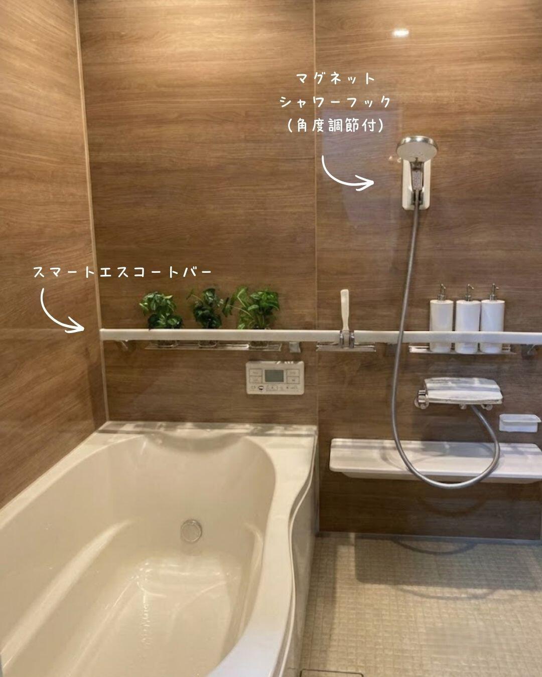 “手すり+シャワー&棚の位置調整” ができる多機能バー。