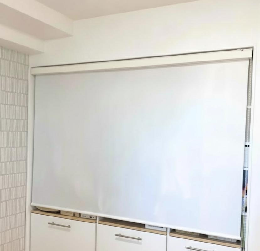 扉をなくした代わりに、開閉のためのスペースを取らない「ロールスクリーン」を設置しました。