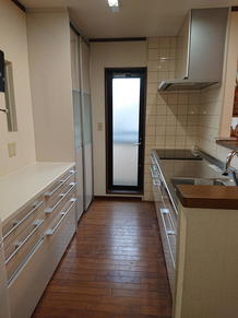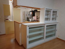 キッチンのカウンターに収納棚を増やして、収納力バツグンに!!