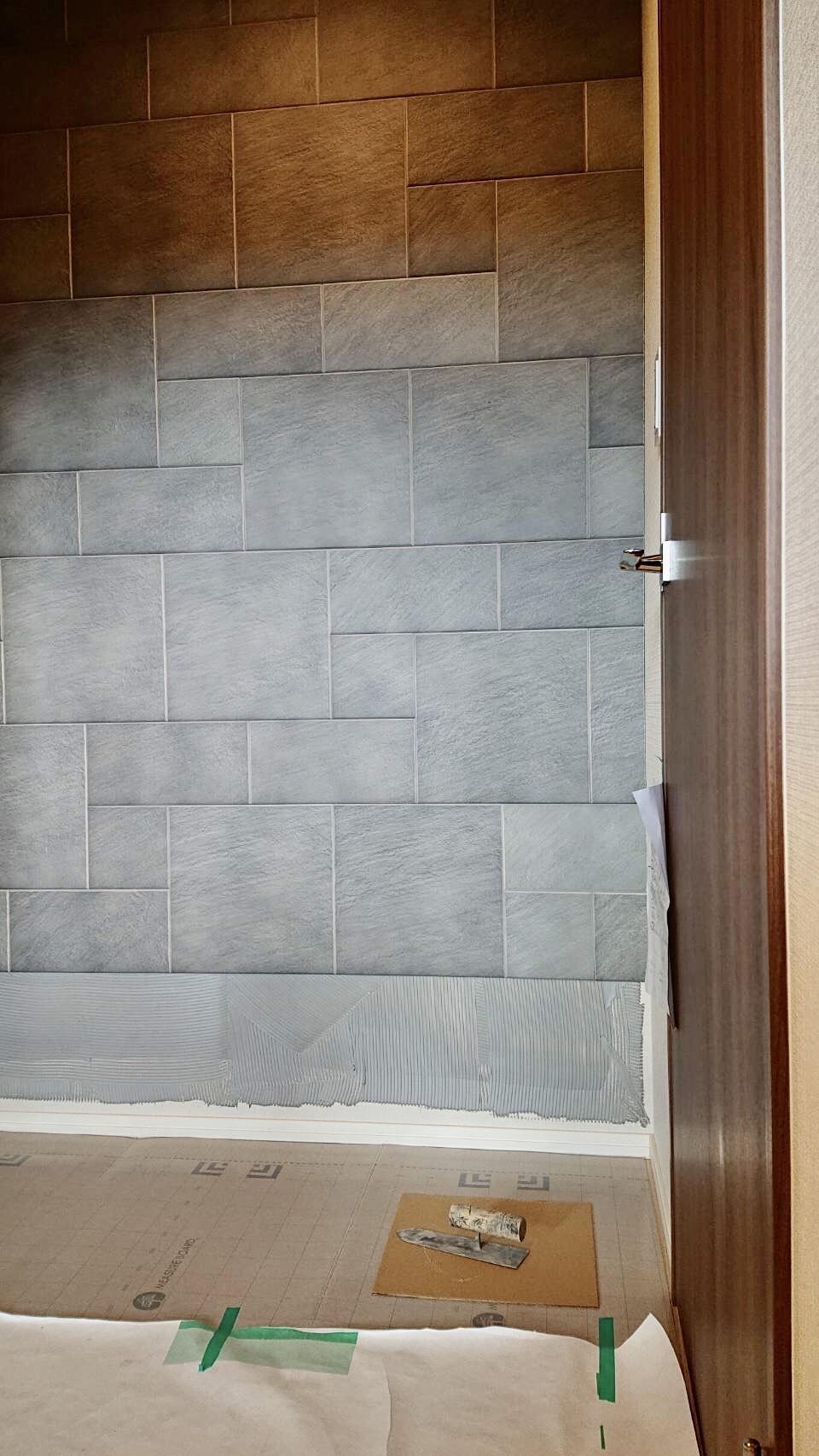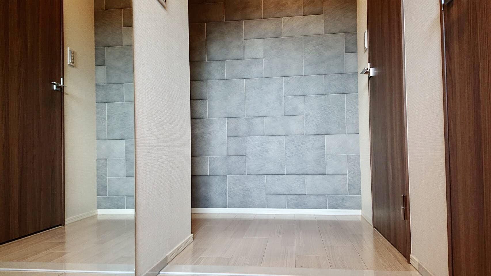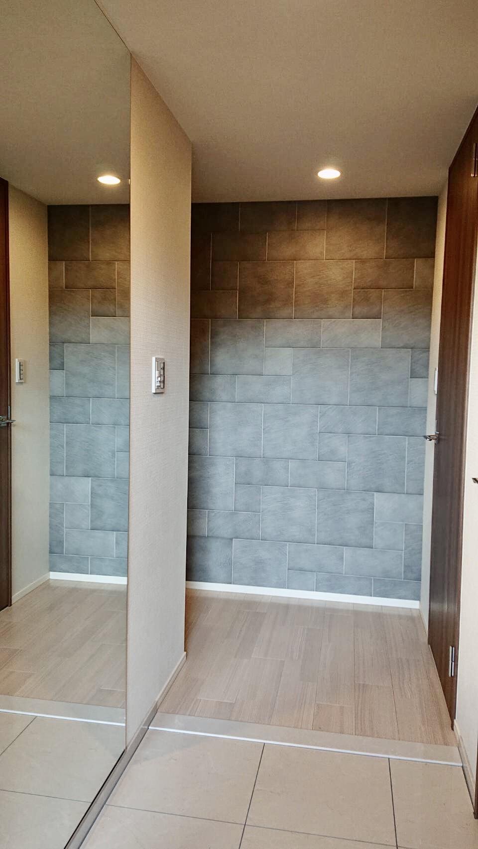 玄関を入ってすぐ正面の壁にエコカラットを貼り、玄関の左側には床から天井までの大きな鏡を付けました。おうちの顔である玄関。鏡にエコカラットが映り込み、広々とした上質な空間になりました。エコカラットには脱臭機能、調湿機能があり、玄関にもとてもお勧めです!