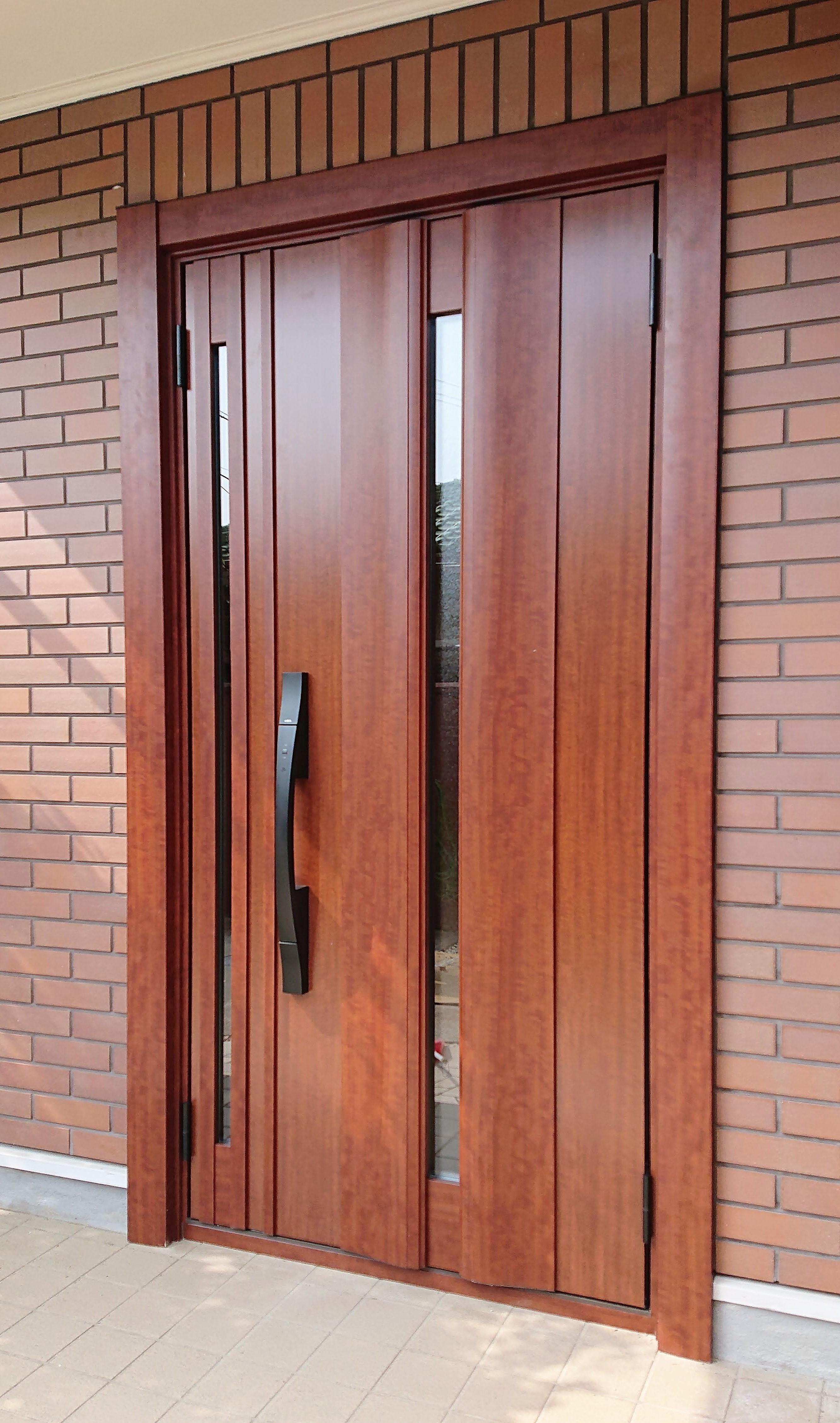 一枚板でできた玄関ドアをLIXILリシェントにリフォームさせていただきました。 タッチキーで、ボタンを押すだけで鍵を開けれるようになり、オートロックもできます。 防犯性もアップして、安心で快適になりました。