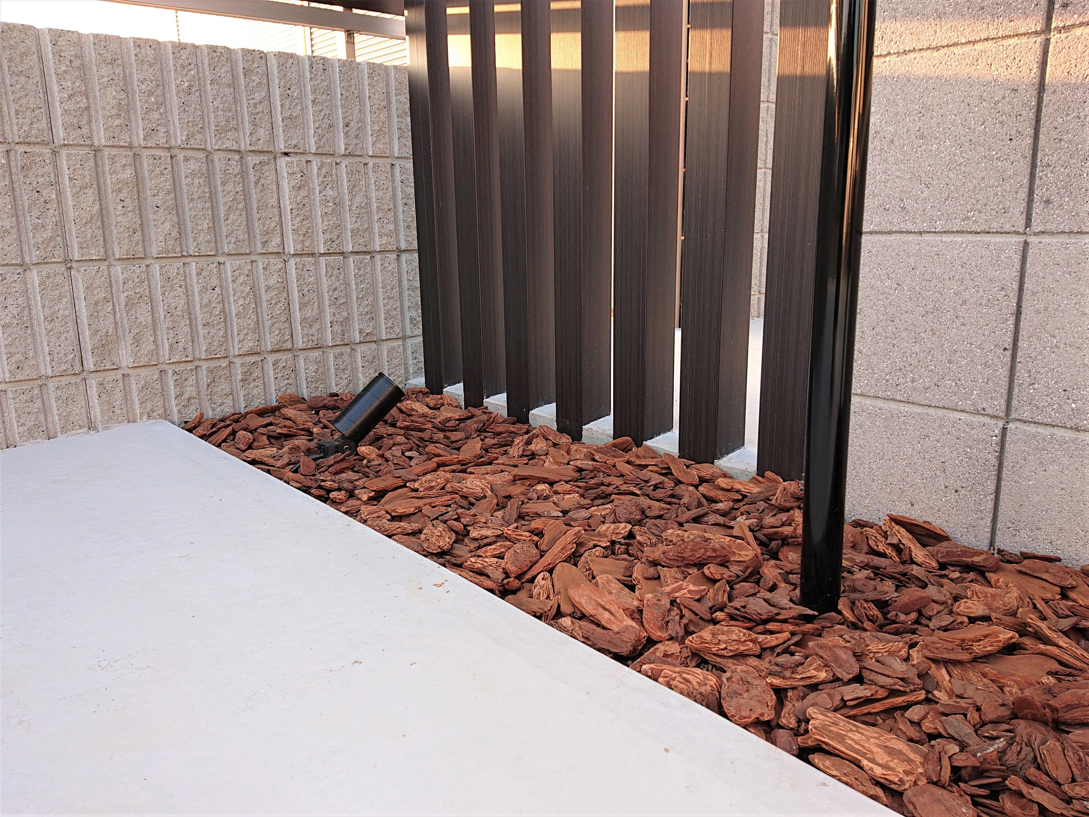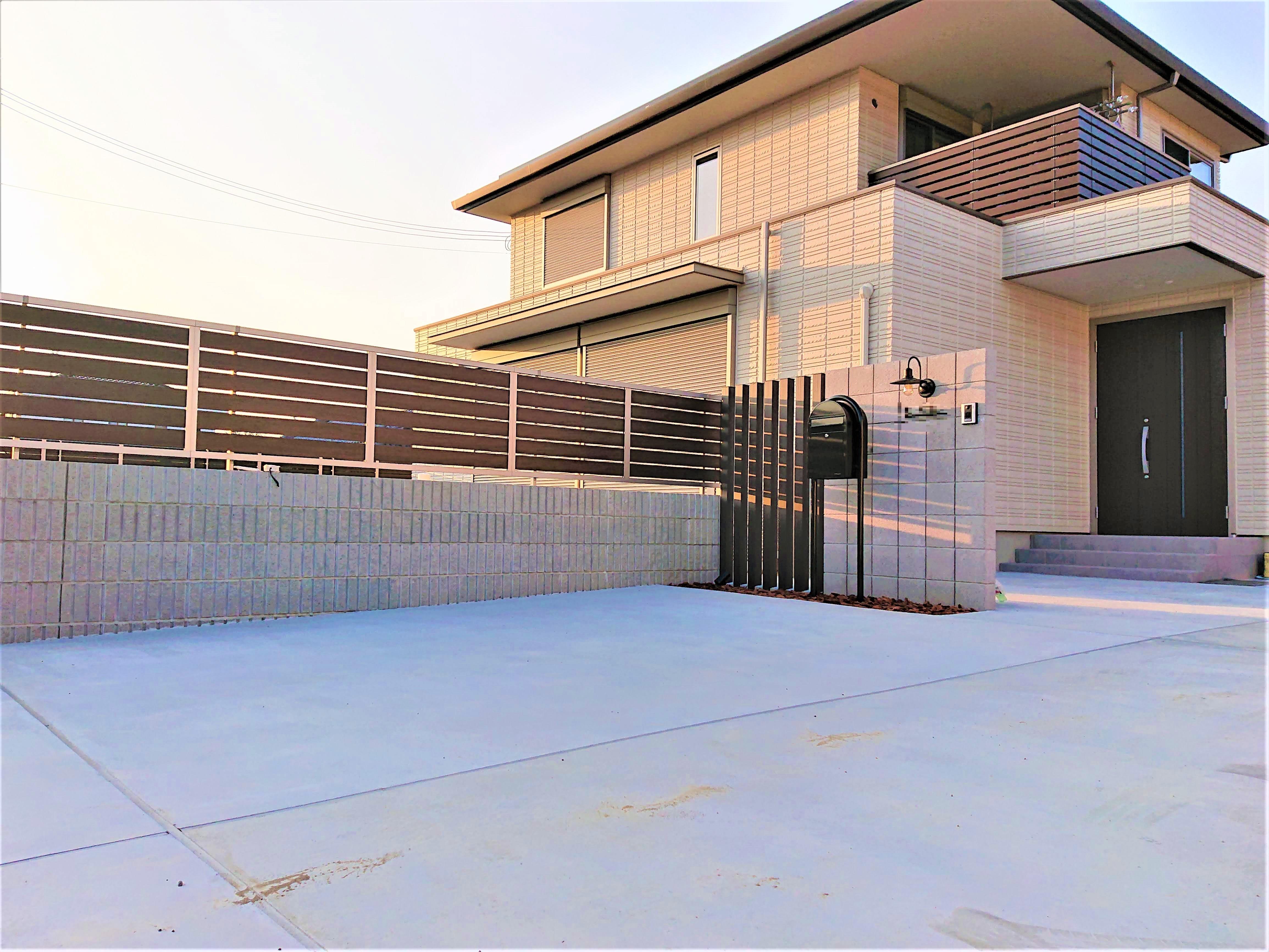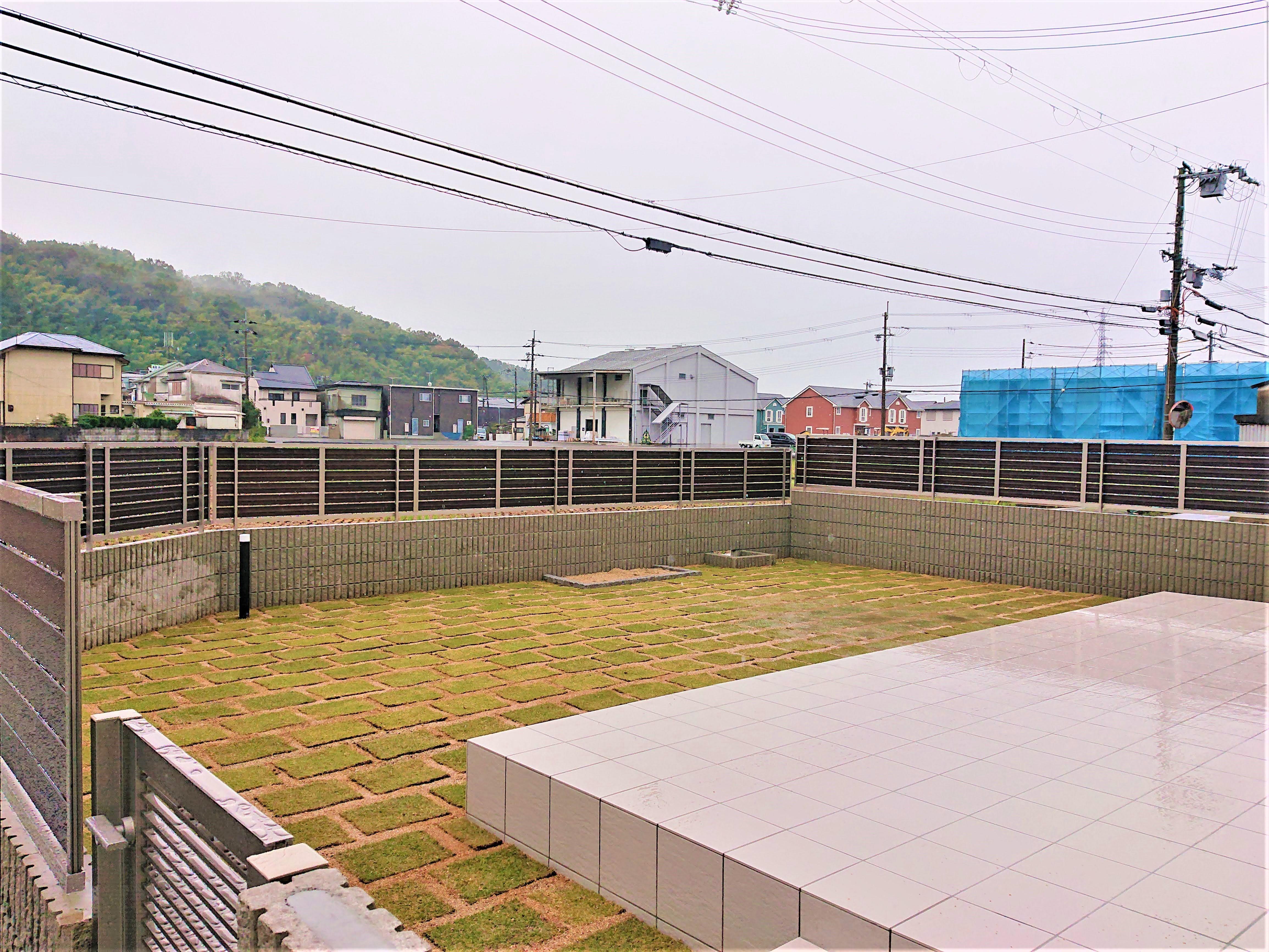 広い敷地に新築を建てられた和歌山市K様邸のエクステリア工事。窓からお庭へ出ると、タイルテラス、そして芝生と続きます。砂場も作って、お子様が安全に、思いっきり遊べるお庭になりました。