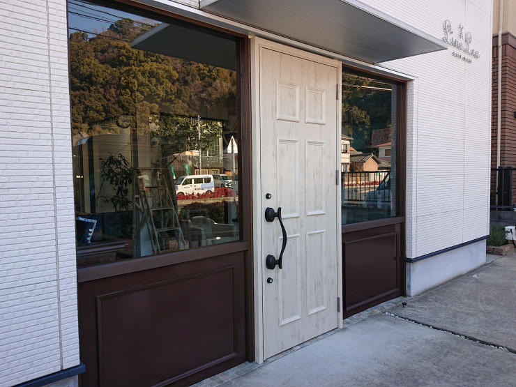 ファサード(建物の正面部分)のメンテナンスに、出入口ドアを入替えあらたなお店の顔へ