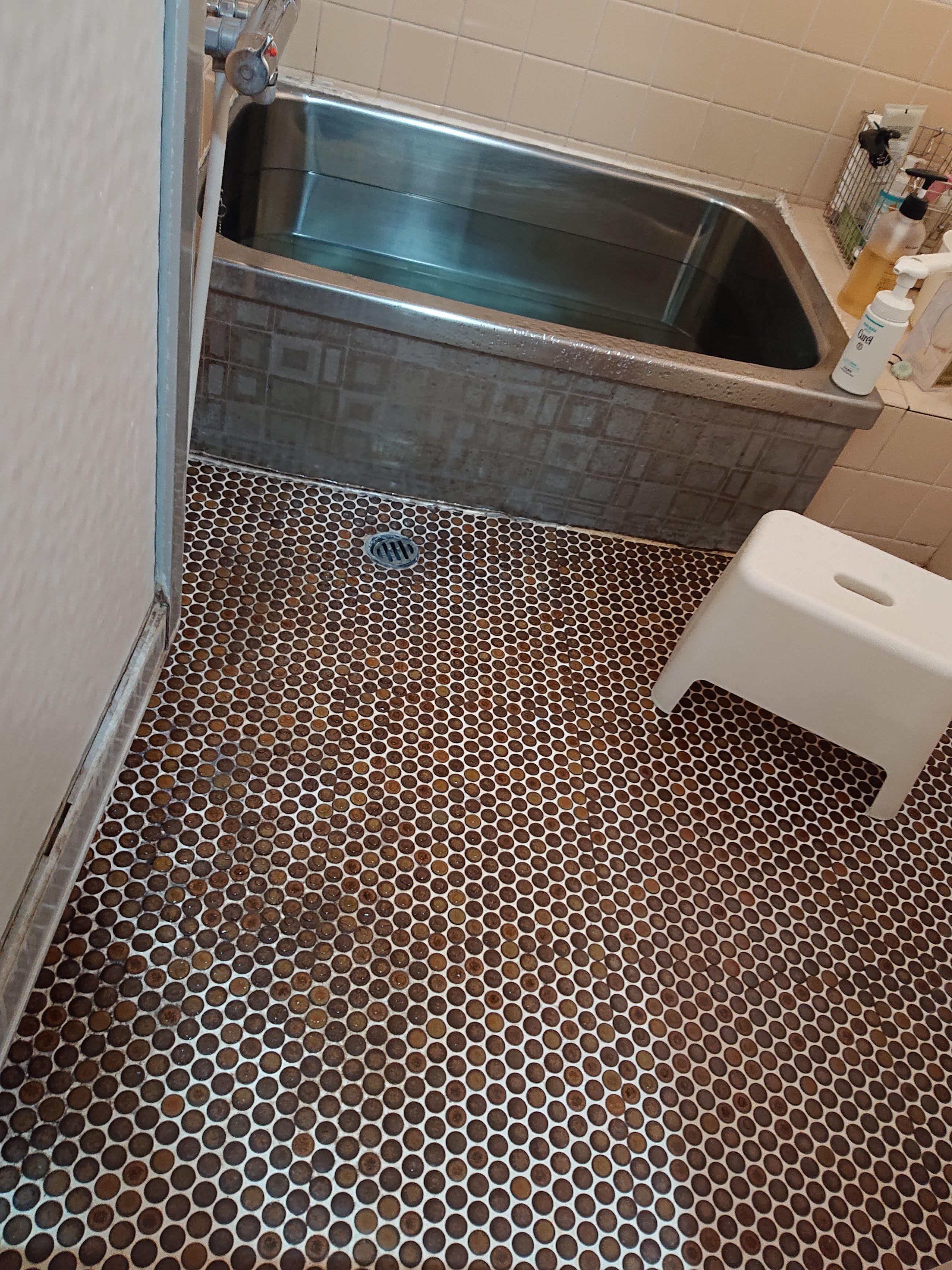タイルの床の上にシートを貼り、足のひんやりを改善!
