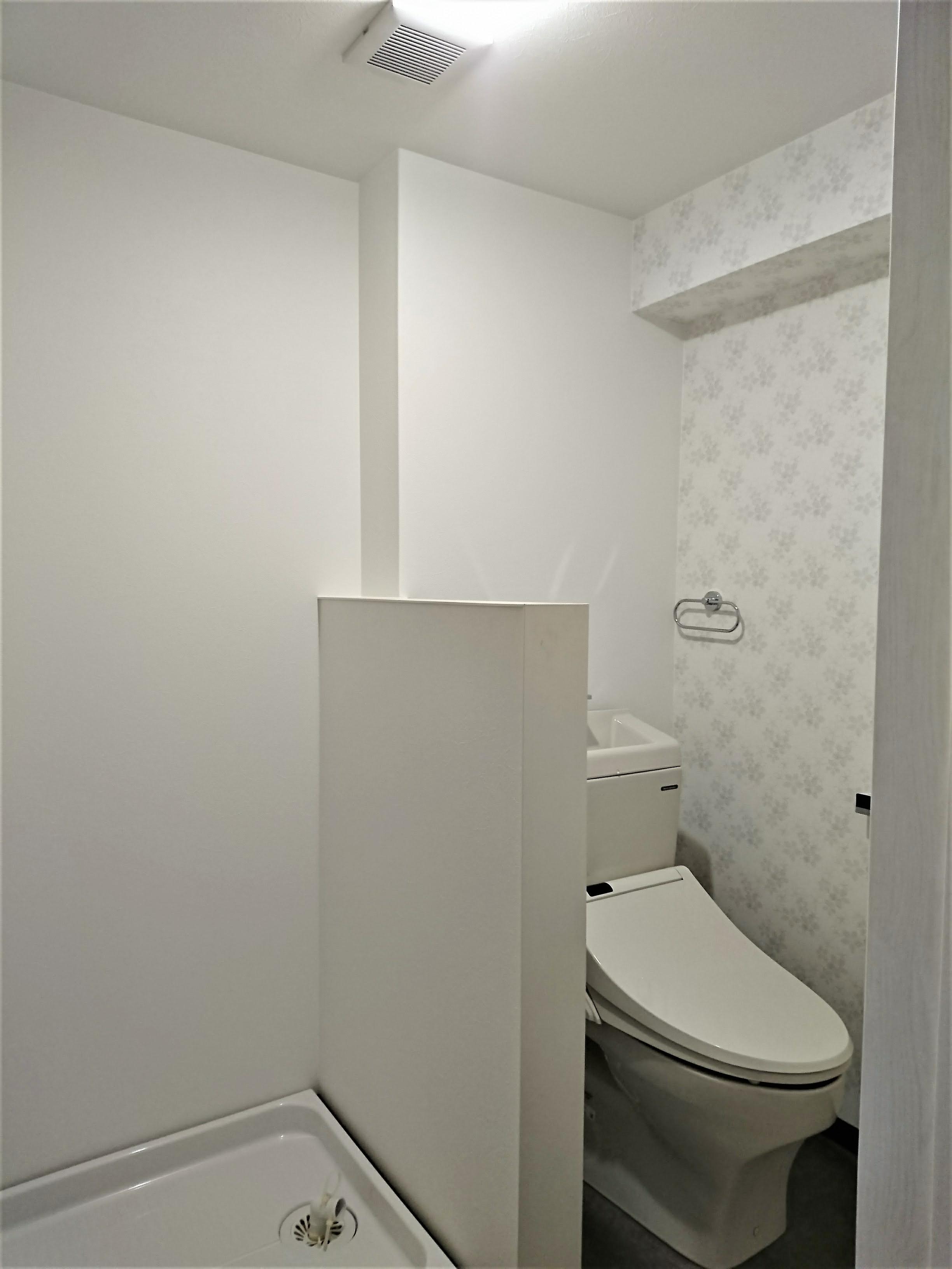 洗濯機があるユーティリティ空間へトイレコーナーを設置。