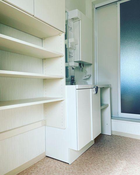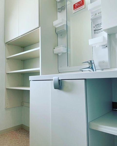 たっぷりの収納に脱衣スペースができ、使いやすい洗面所に!