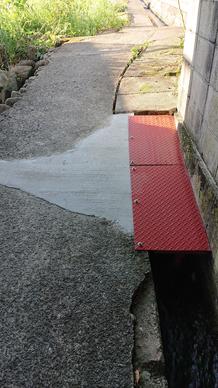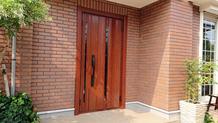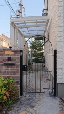 アプローチ屋根取付・駐車場目地にレンガ敷き