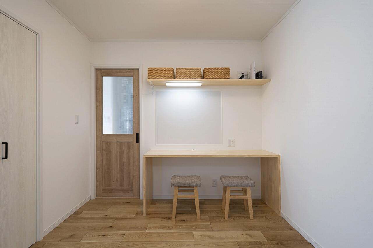それぞれの個室には大きくなったお子さんが勉強に集中できるよう、備え付けのテーブルを作成しました。