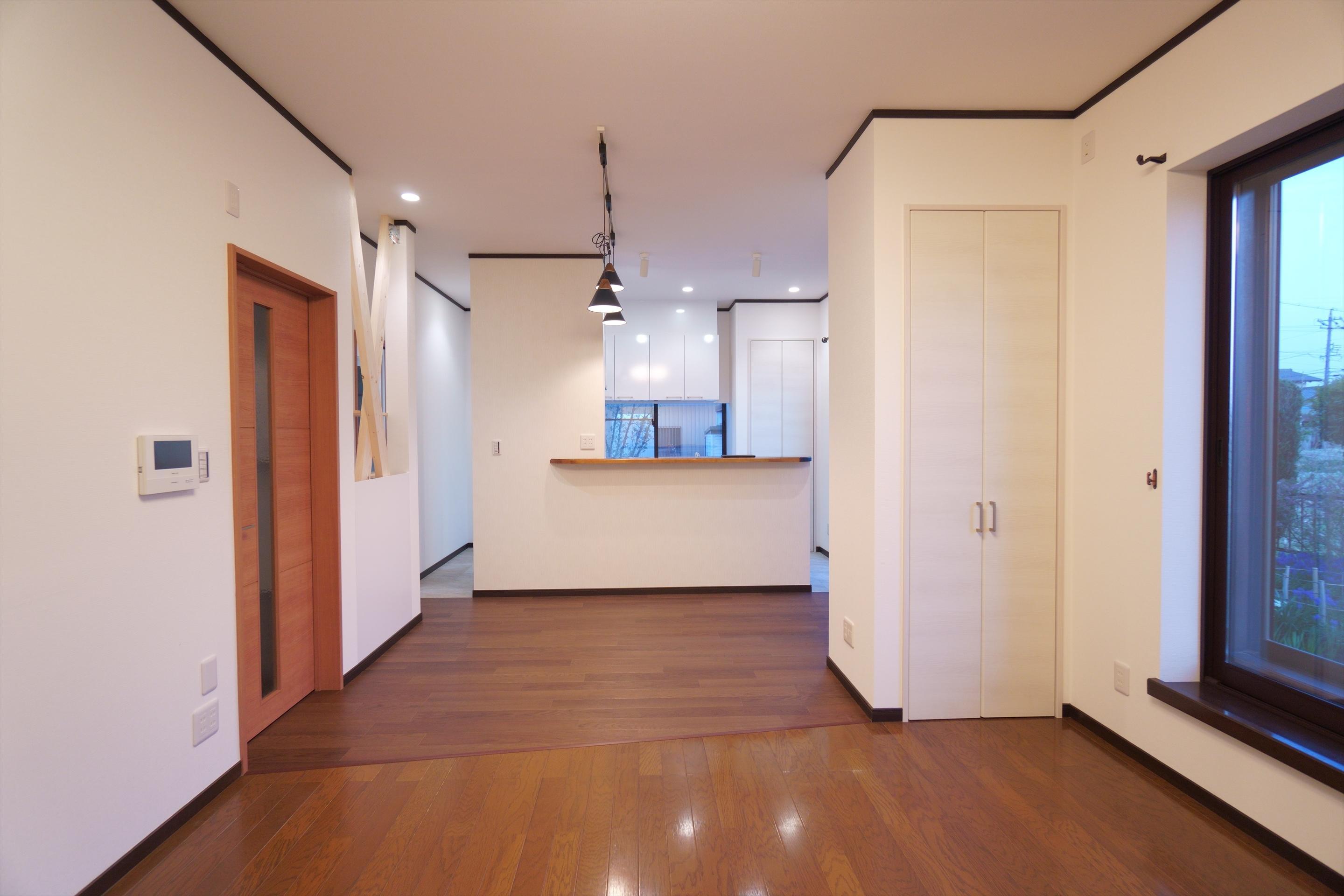 部屋中央左側の木材バッテンは耐力壁を追加。