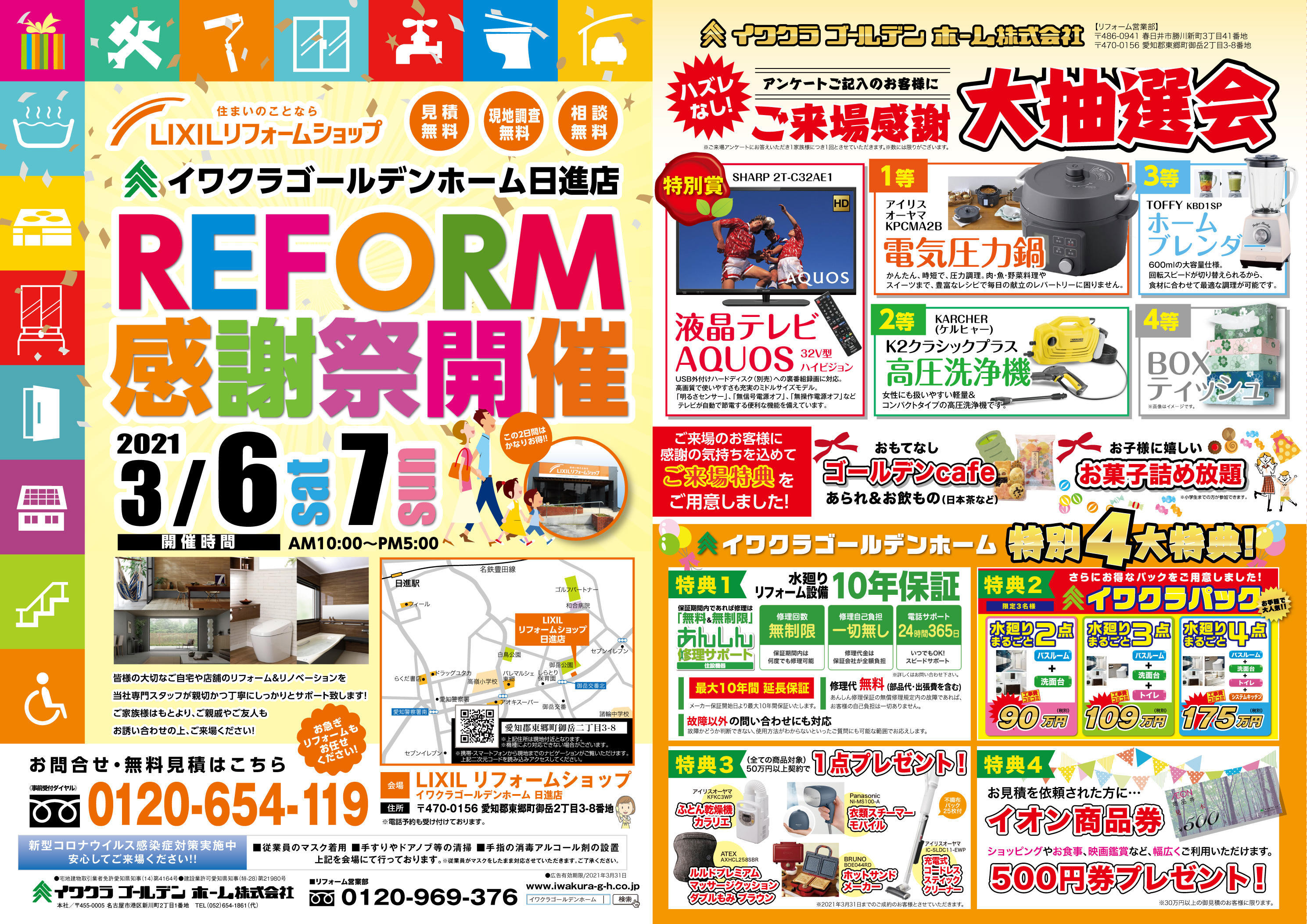 イワクラゴールデンホーム日進店にてリフォーム感謝祭を開催いたします。
