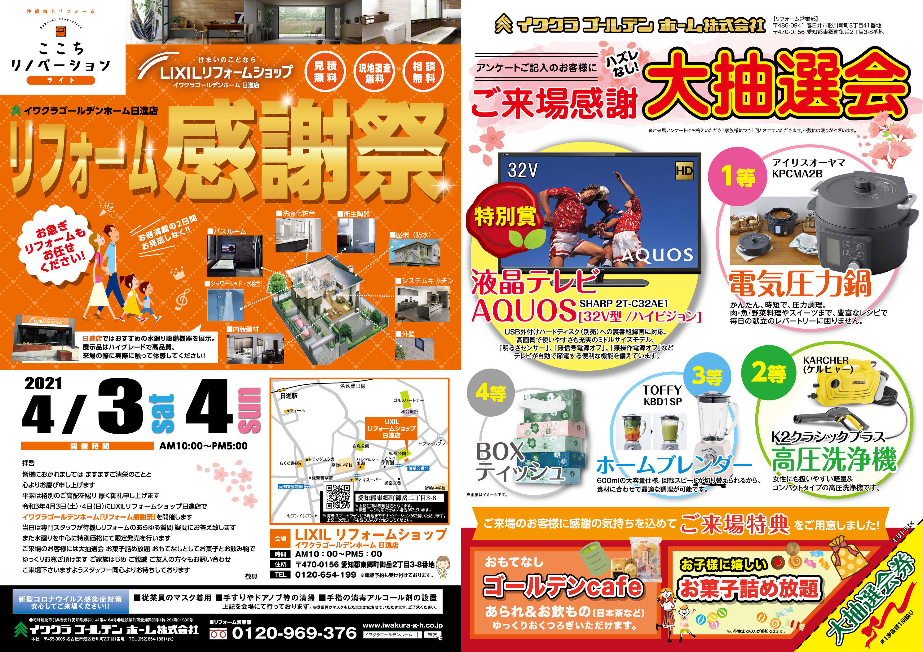 イワクラゴールデンホーム日進店にてリフォーム感謝祭を開催いたします。