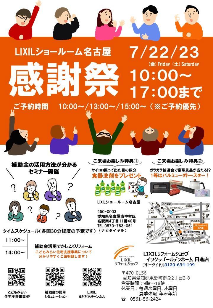7月22日(金)・23日(土)お客様感謝祭 in LIXILショールーム名古屋