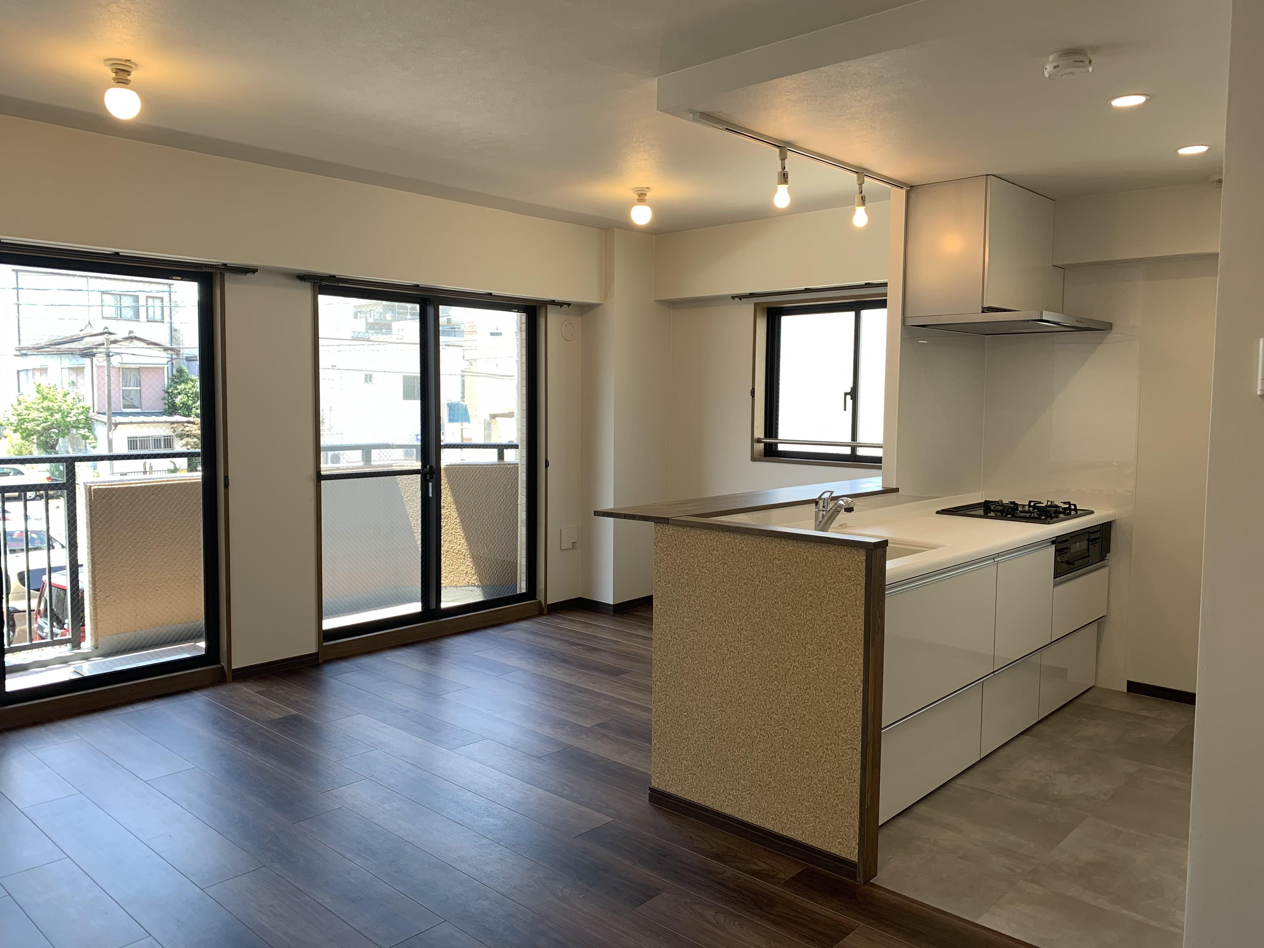 キッチンに入るところの壁を壊して、キッチンからLDK全体を見渡せるようにしました!![]()