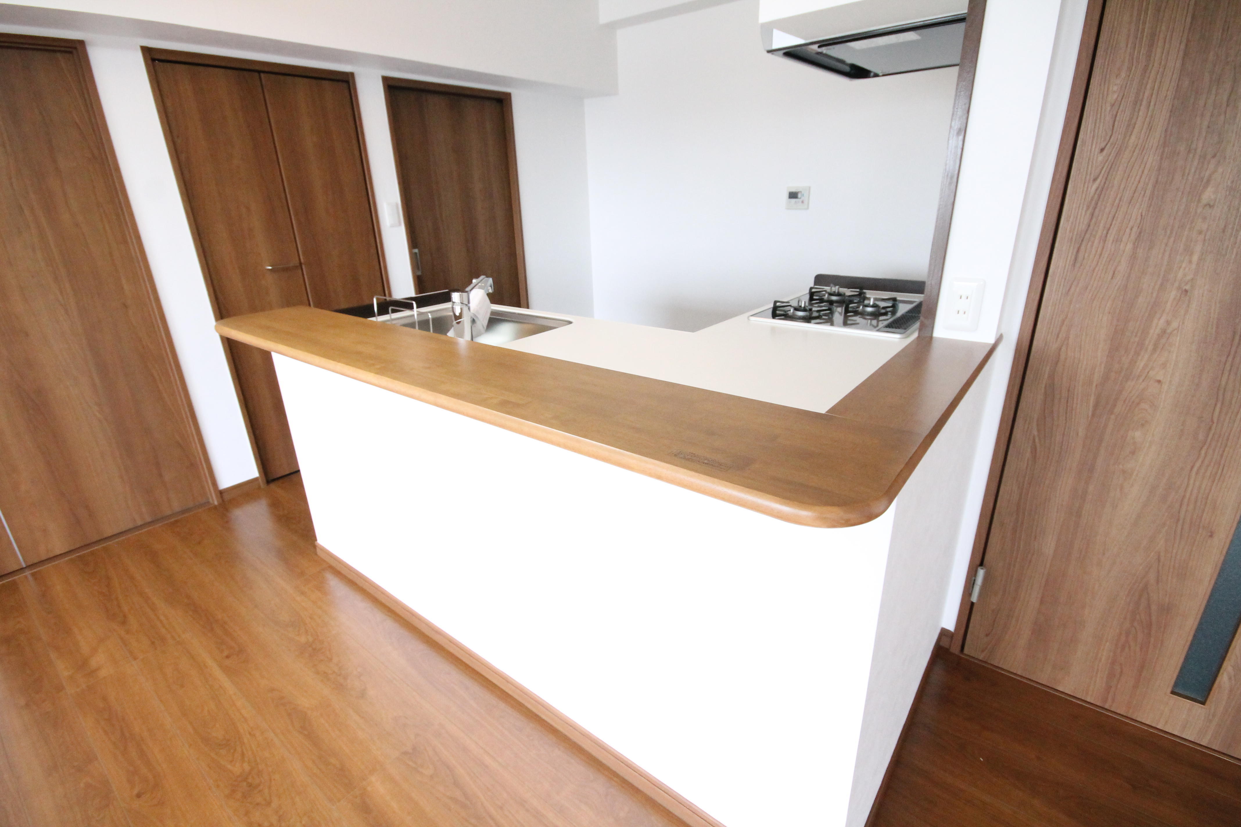 暗くて狭かった壁付けキッチンは、南向きの明るい対面キッチンに✨