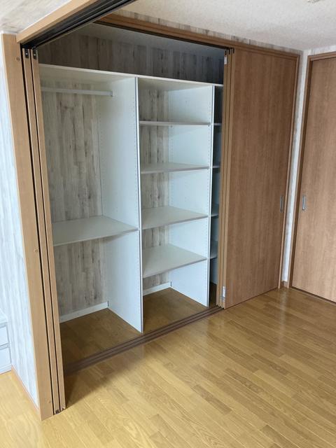 LDK横の和室を洋室に変える間取変更や水廻り全て交換、クロス・床・天井・建具全て交換などの大型リノベーションを致しました。 和室から変えた洋室には壁2面に収納を作成し、LDK一面にも収納付き壁面作業スペースを作成致しました。 これで収納には困りません!