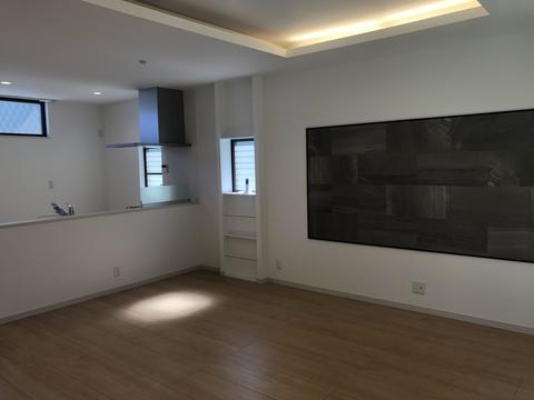 明るいLDKにしたい思っていましたので、 フローリングや建具は全て明るい色を選びました。 明るさを引き立てる為にエコカラットやキッチンの色は 落ち着いたグレーを選び、折り上げ天井の間接照明で さらに落ち着いた空間となりました。