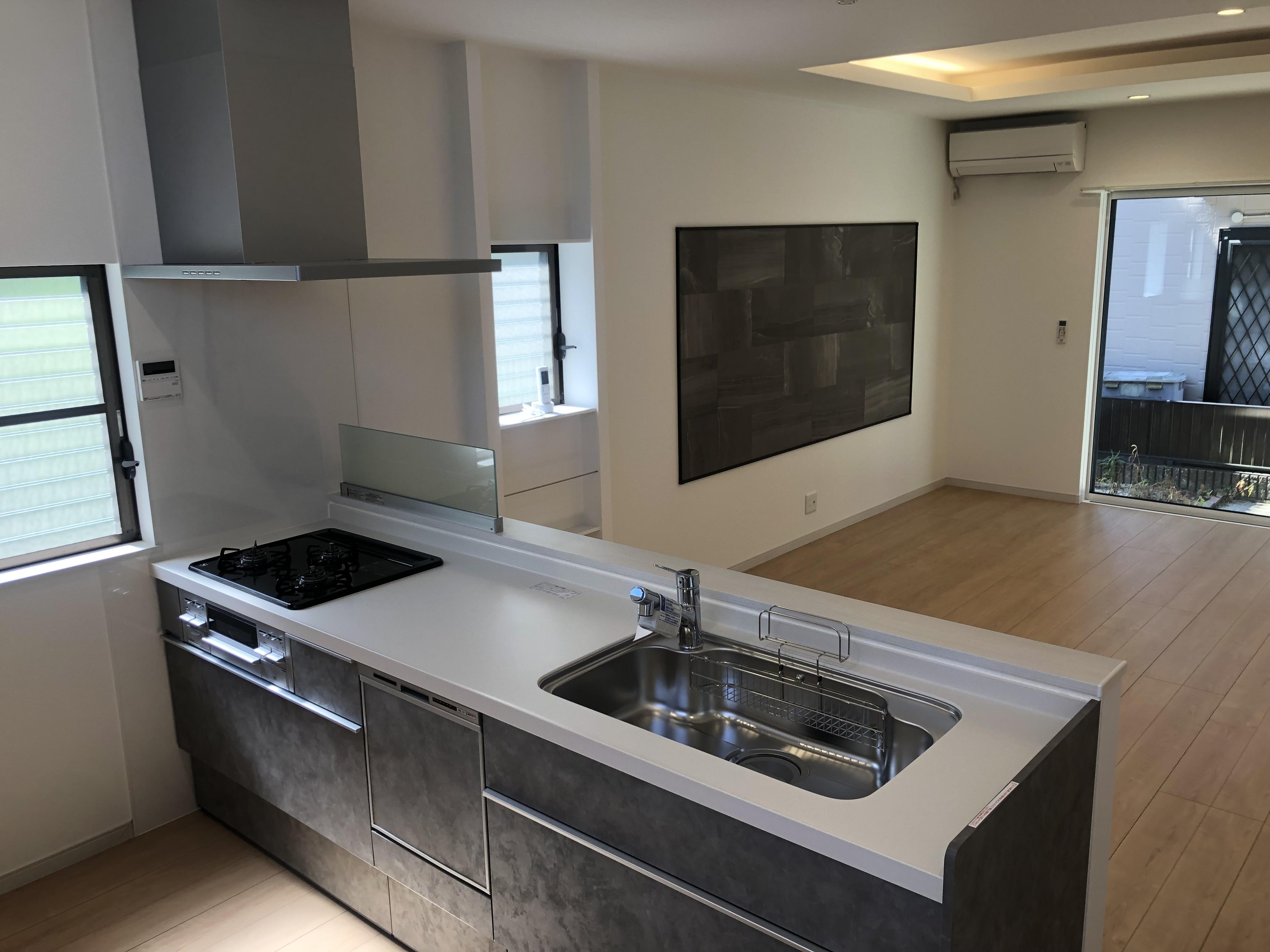 キッチンは壁や吊戸棚を無くして、とても明るく広いキッチンへと変わりました!